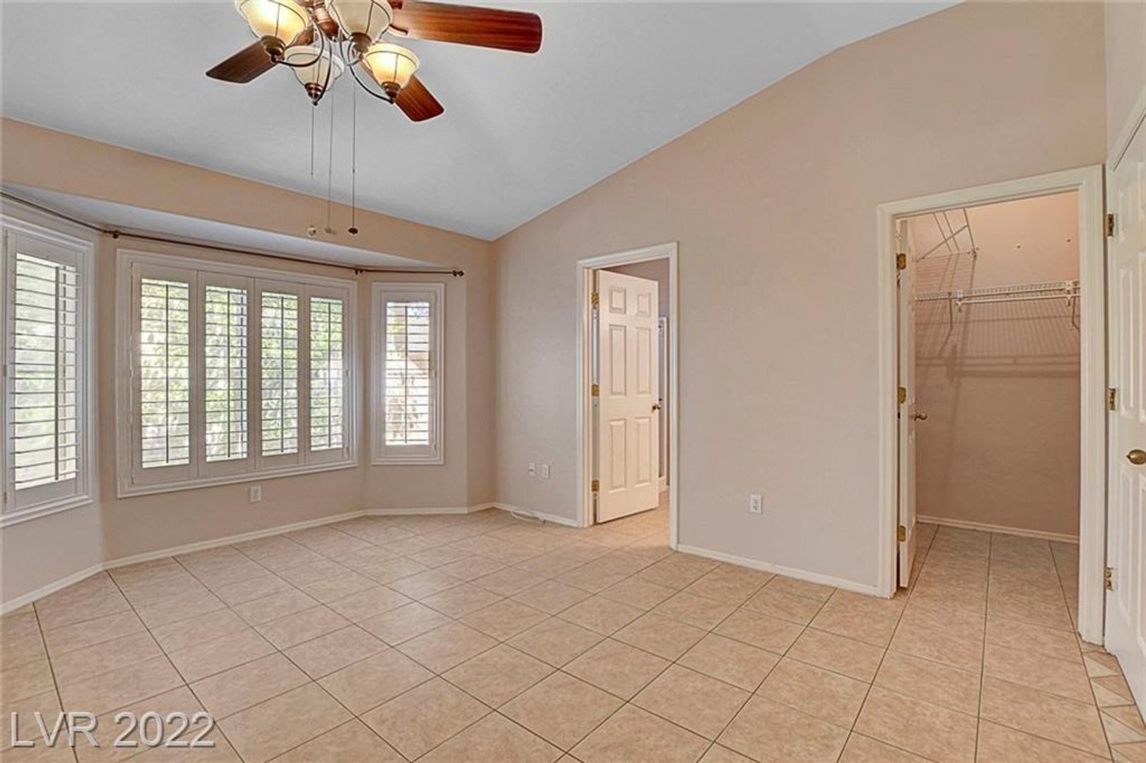 The spacious primary bedroom offers vaulted ceilings, a ceiling fan, a charming bay window pop-out, an ensuite bathroom with a walk-in shower, and a generous walk-in closet. You'll also appreciate the convenience of an indoor laundry room, avoiding hot garage laundry.