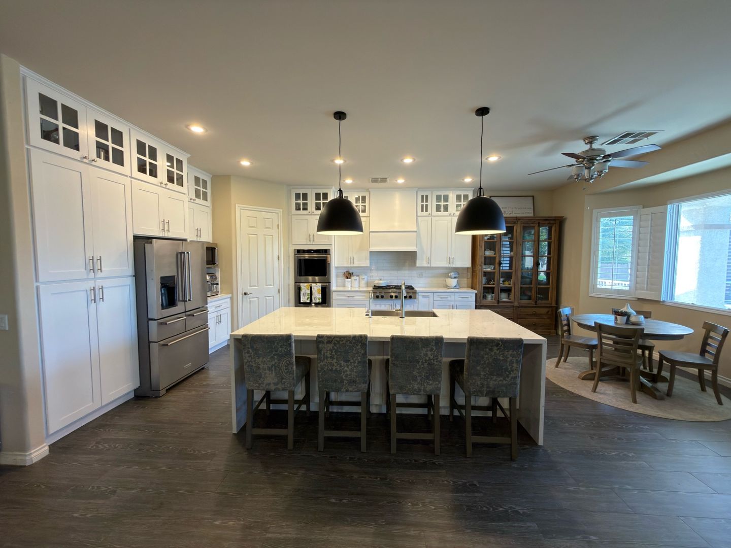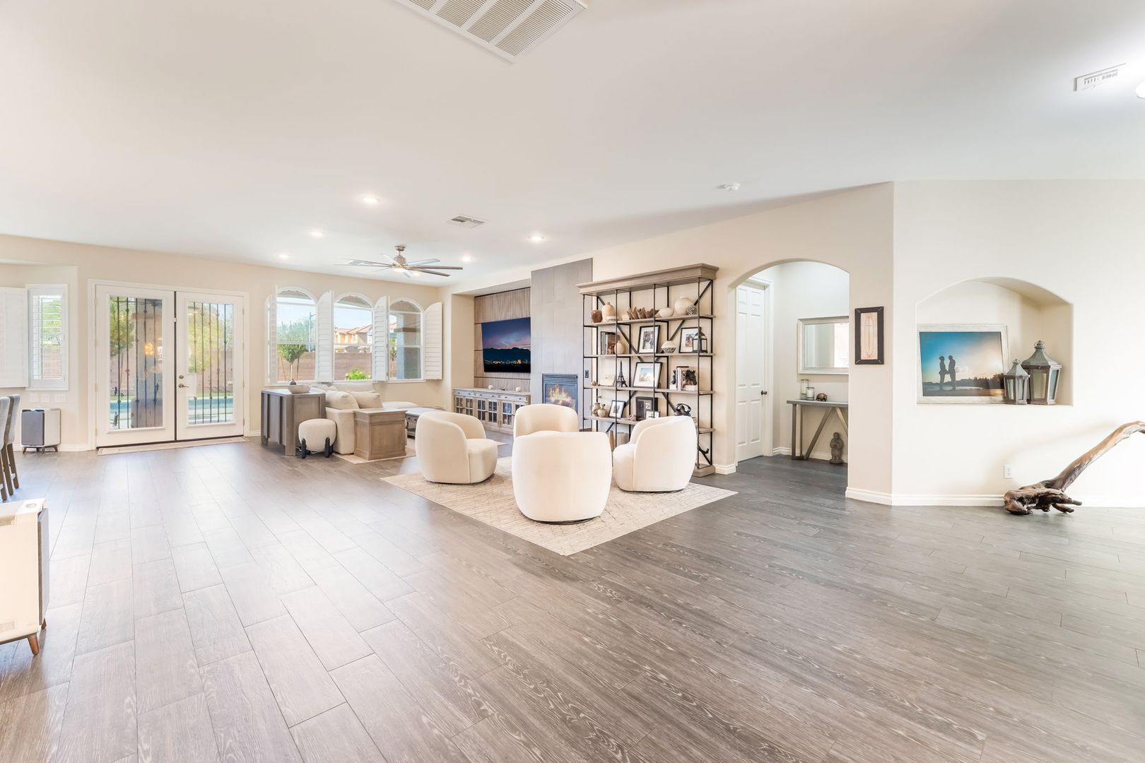 Furnished & Upgraded 1-Story Home on a Half-Acre with RV Parking in a Gated Community *Amazing Backyard* with Heated Pool, Spa, Cabana, (2) Covered Patios and Firepit = 4-Bedrooms, 3.5 Bathrooms & 3-Car Garage - Open Floorplan with Vaulted Ceilings , Remodeled Kitchen with Huge Island, Floor to Ceiling Cabinets, Custom Cooktop and Walk-In Pantry - Oversized Primary Suite with Walkin Shower, Spa Style Bath, Dual Sinks and (2) Large Walk-In Closets. Great Location close to Shopping, Dining, 215 & 95 (11) Freeways.