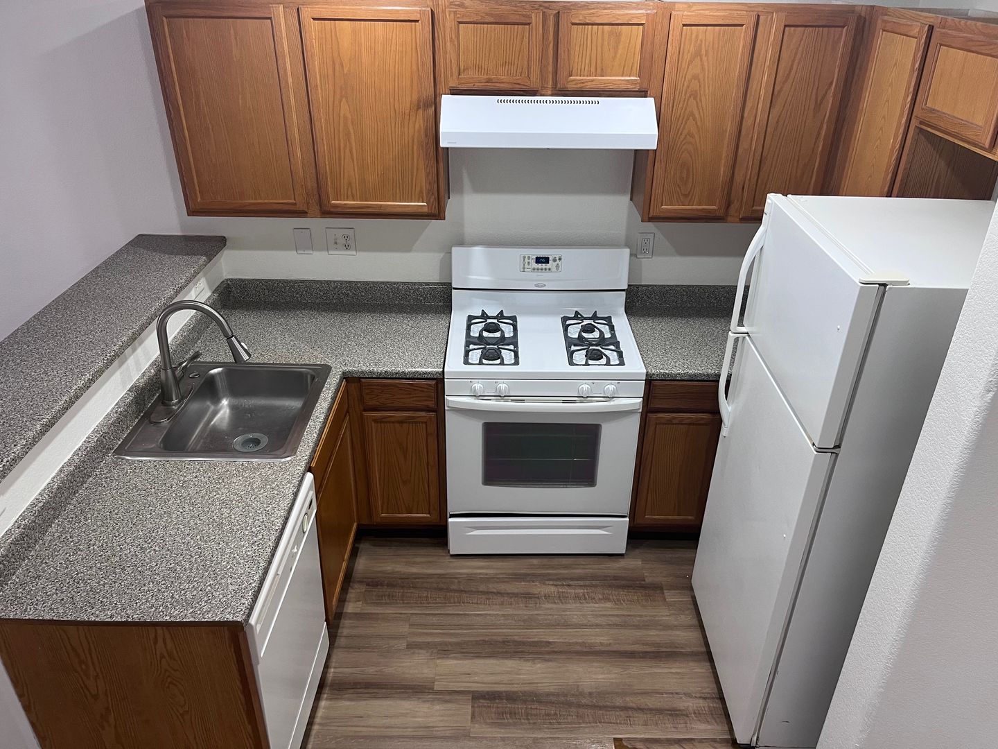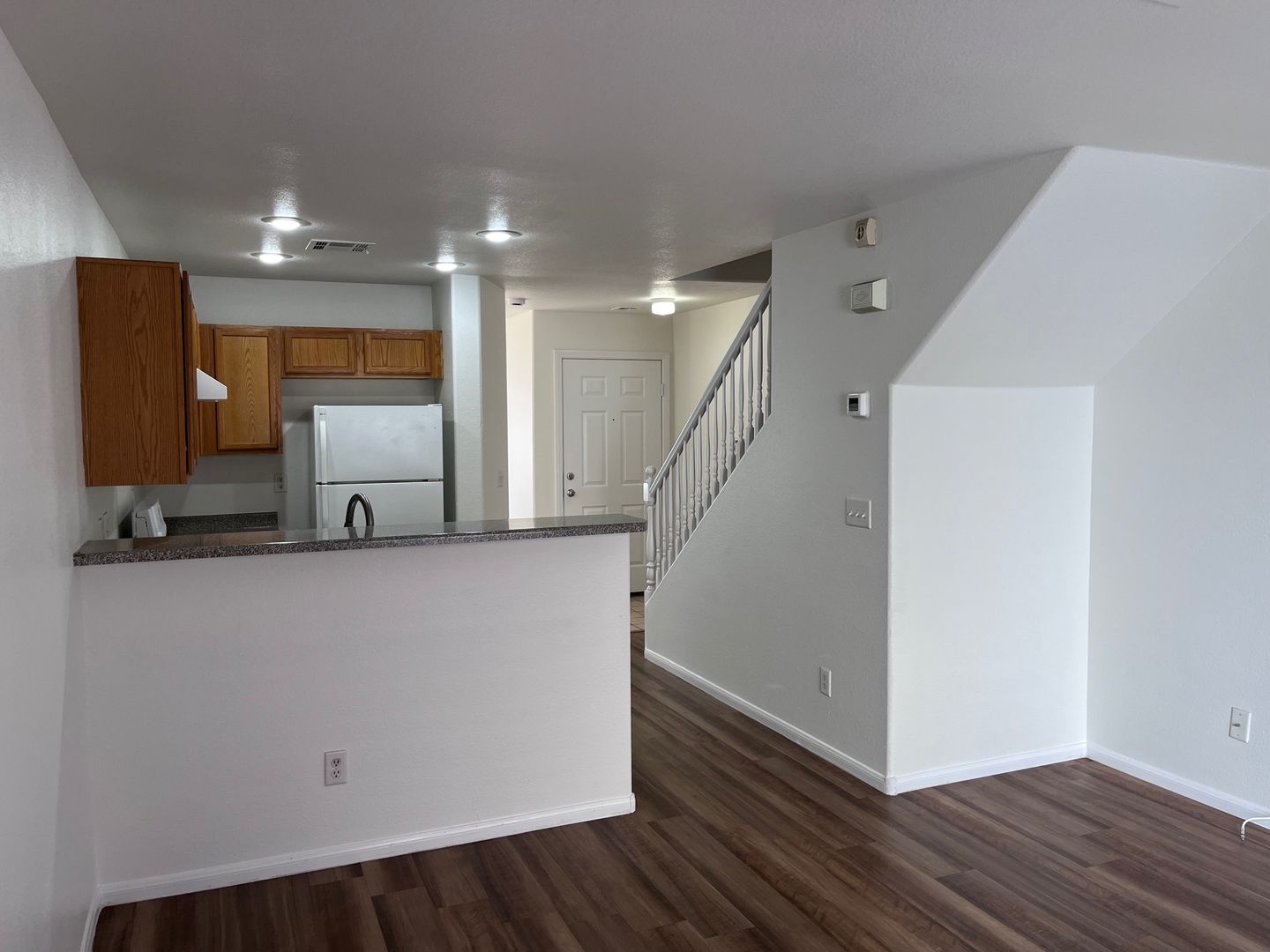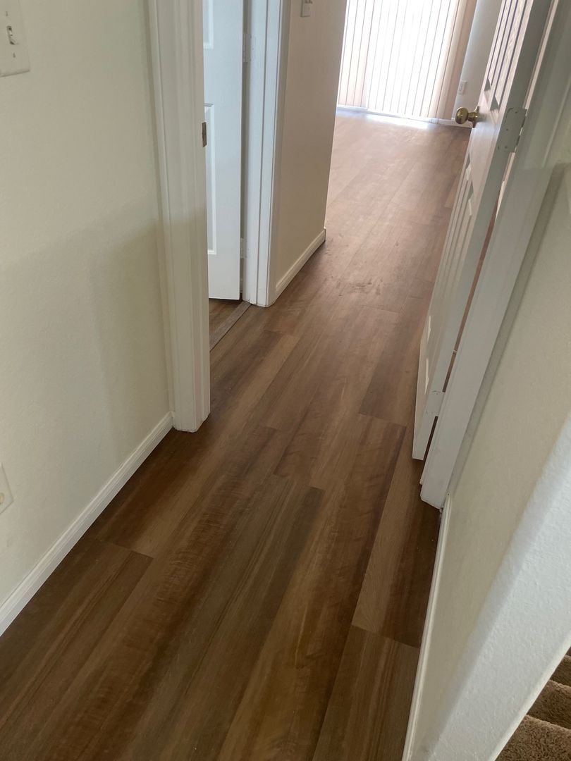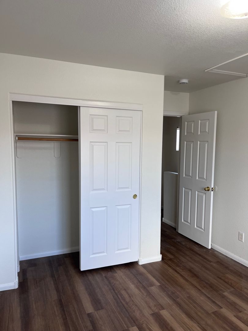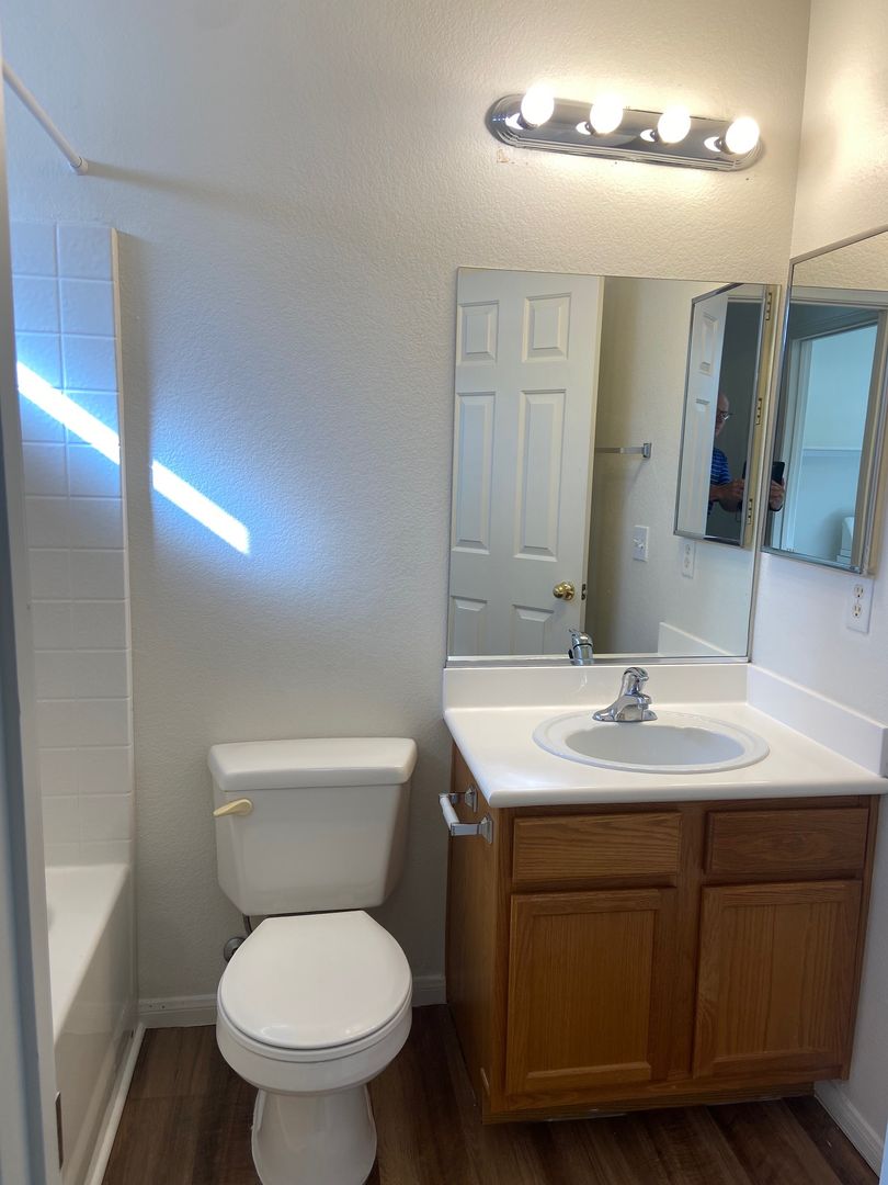 Nicely renovated and move-in ready, this charming 2-bedroom, 2.5-bath home is located in a gated community in North Las Vegas. The open-concept floor plan features fresh paint and stylish luxury plank flooring throughout, with new carpet on the stairs. The bright kitchen includes a breakfast bar and comes fully equipped with all appliances, including a full-size washer and dryer. Each bedroom offers its own private full bathroom, and a convenient half-bath is located downstairs for guests. The primary bedroom also features private balcony access—perfect for relaxing outdoors. A one-car garage with a full driveway adds extra convenience and has been freshly painted. One small dog will be considered with an additional deposit. Home includes private fenced in backyard. Available for immediate move. Schedule your showing appointment, available Saturday!