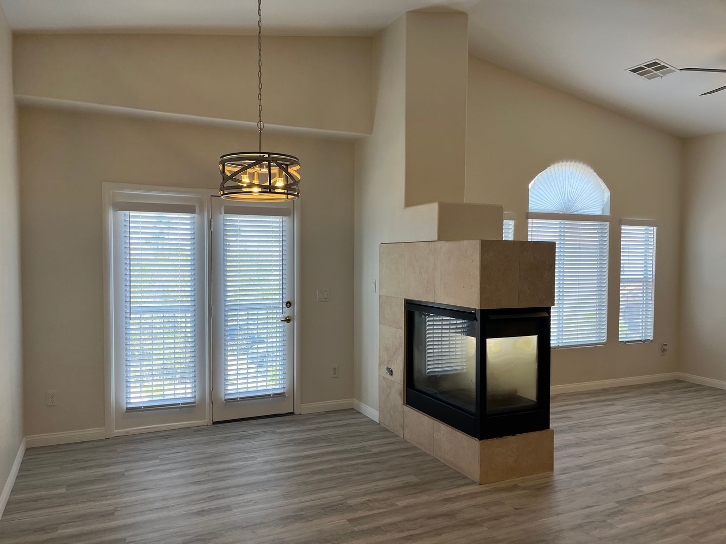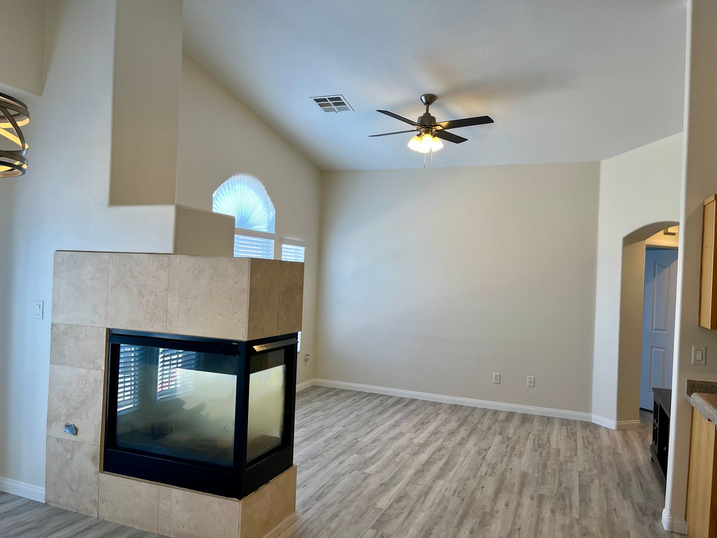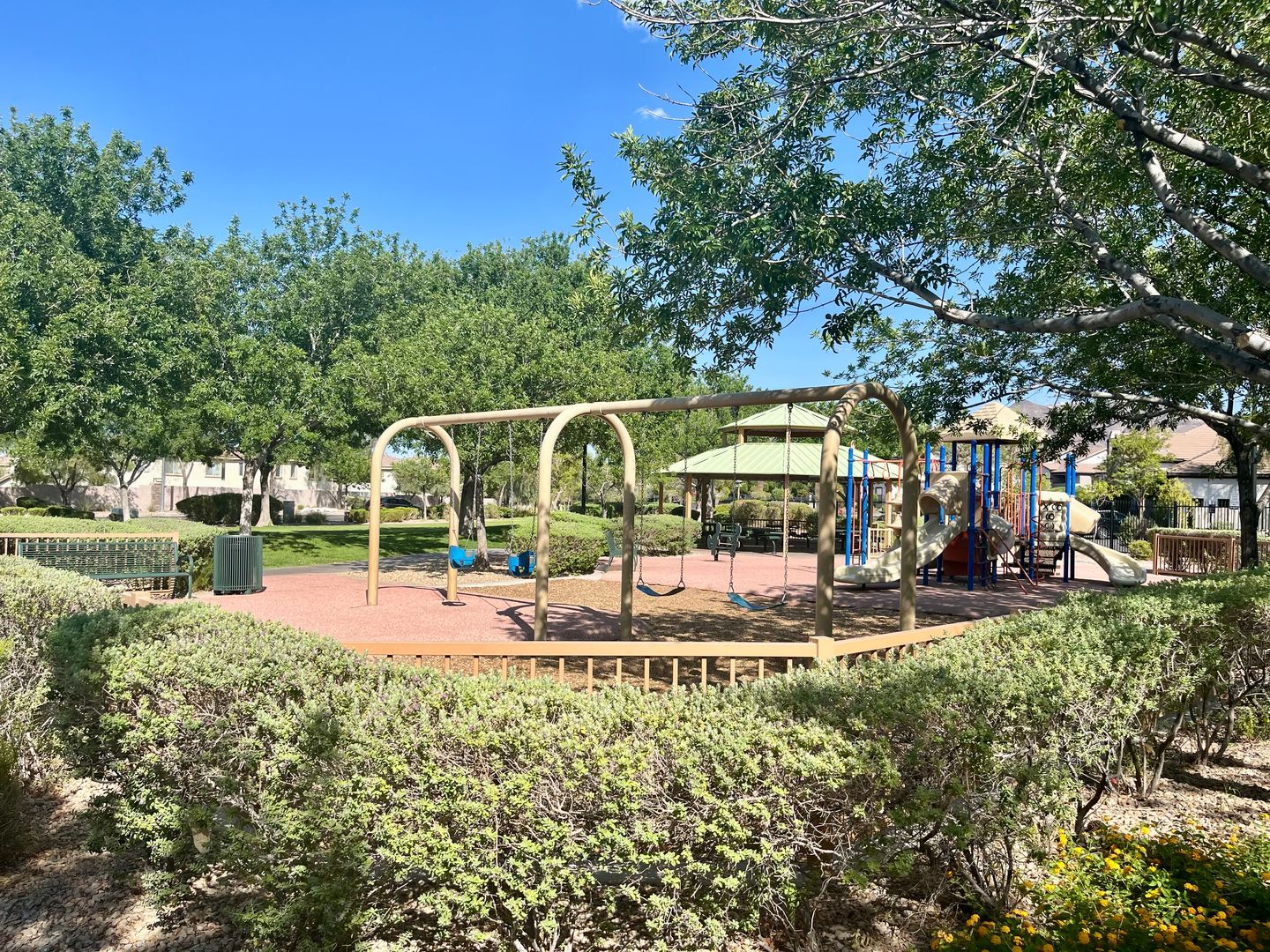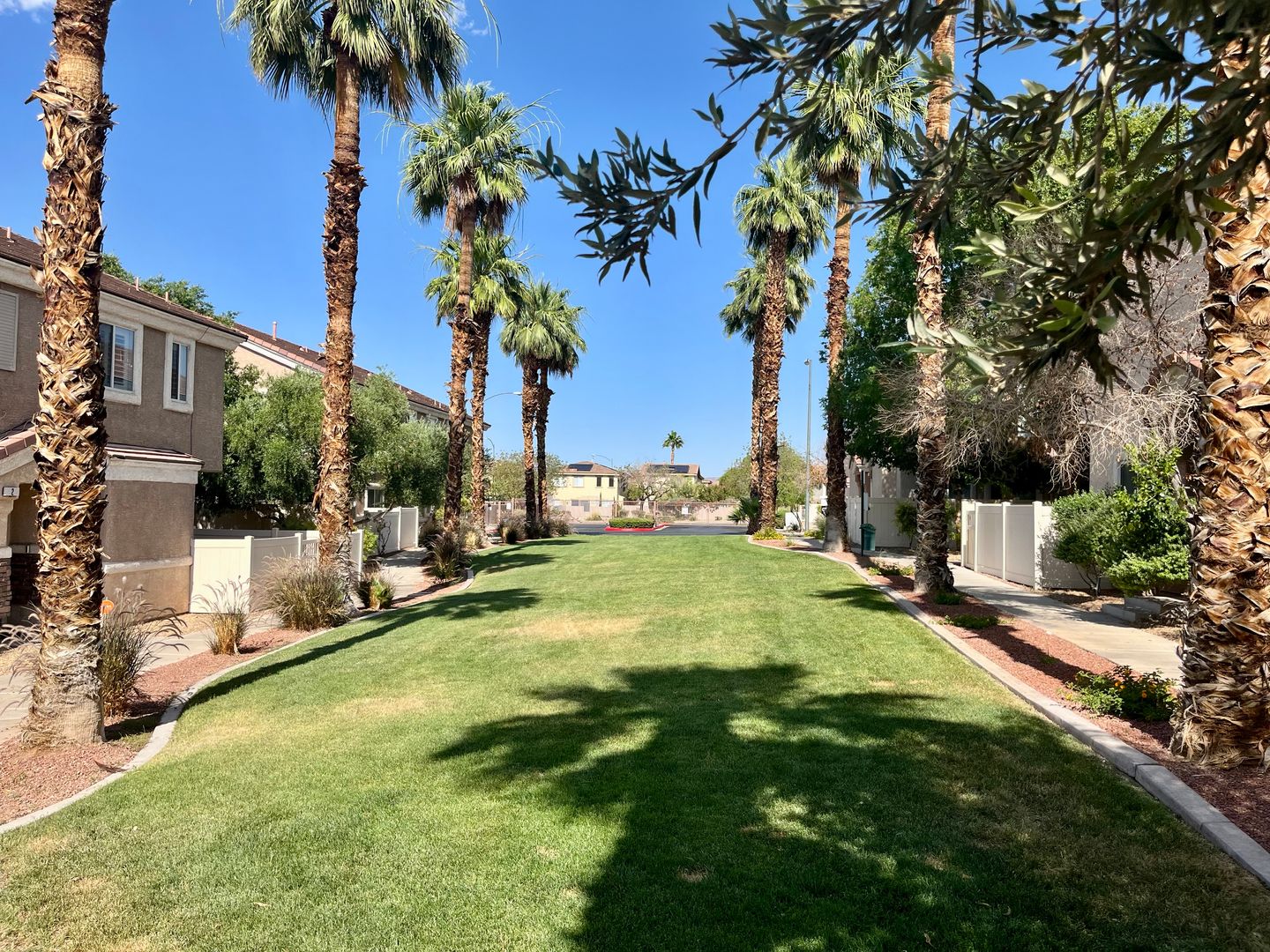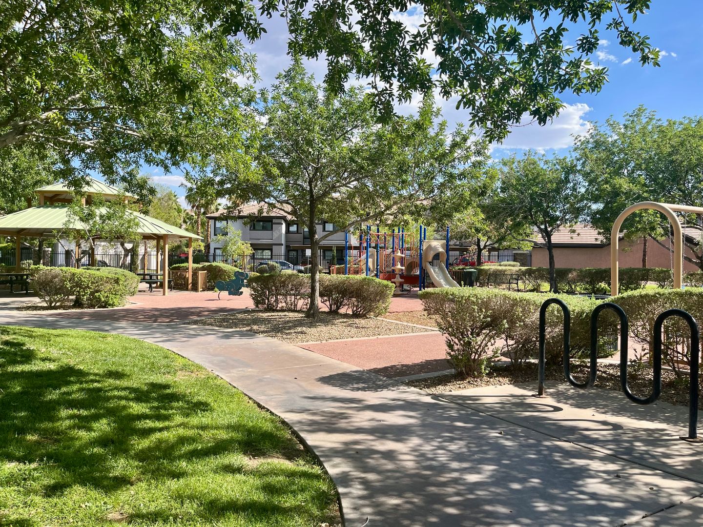 Advertised rent includes all monthly fixed charges. Welcome to this charming 2 Bedroom, 2 bath, 1 car garage Townhome in a gated community in the heart of Henderson! With vaulted ceilings, balcony, ceiling fans & new man-made luxury vinyl plank floors throughout and new AC, this home is move-in ready. The lovely kitchen is comprised of oak cabinetry w/breakfast bar w/ample counter space, laminate counters, pantry, recessed lighting & Stainless Steel appliances. Dining nook with french doors to the balcony and cozy 3 way gas fireplace separating dining & living room w/ceiling fan & light. Primary bedroom, featuring its own ensuite, ceiling fan & light and walk-in closet. Primary bath with walk in shower. Bed 2 is separate from primary with ceiling fan & light. Bath 2 with tub/shower combo. Gated community with pool, park, playground with greenbelt! The home is nestled in a prime location near schools, shopping, freeways, and entertainment! Don't miss out on this incredible opportunity to live in Henderson! $1,700 base rent + $35 trash = $1,735 periodic rent.