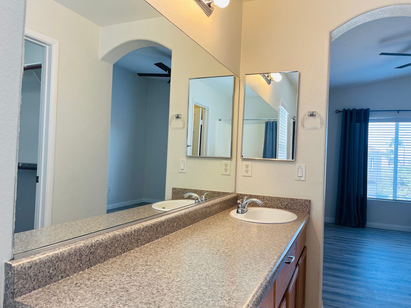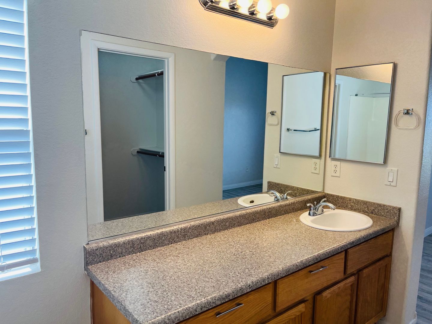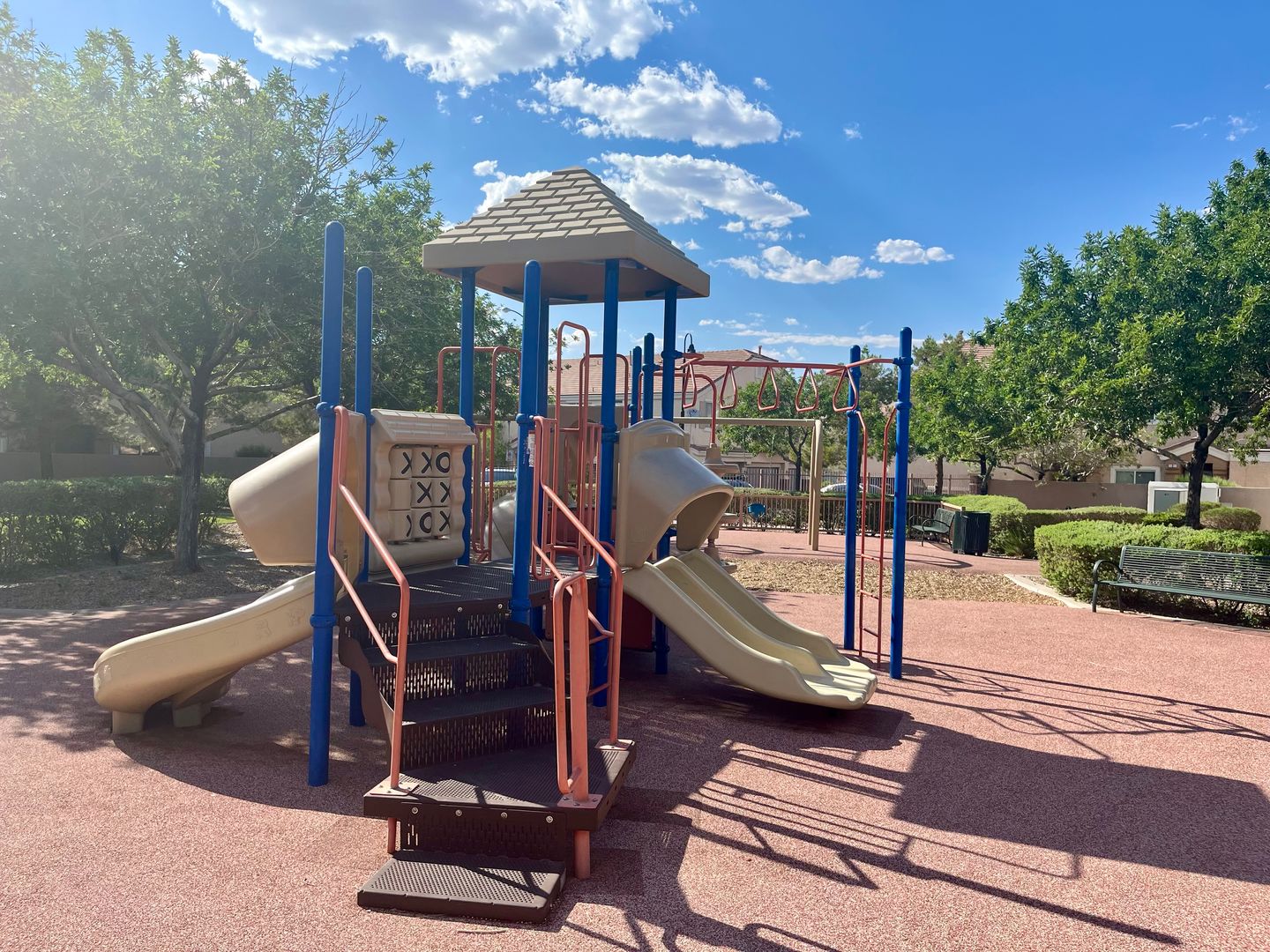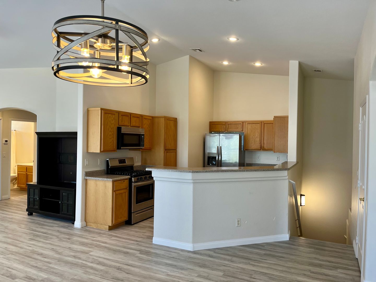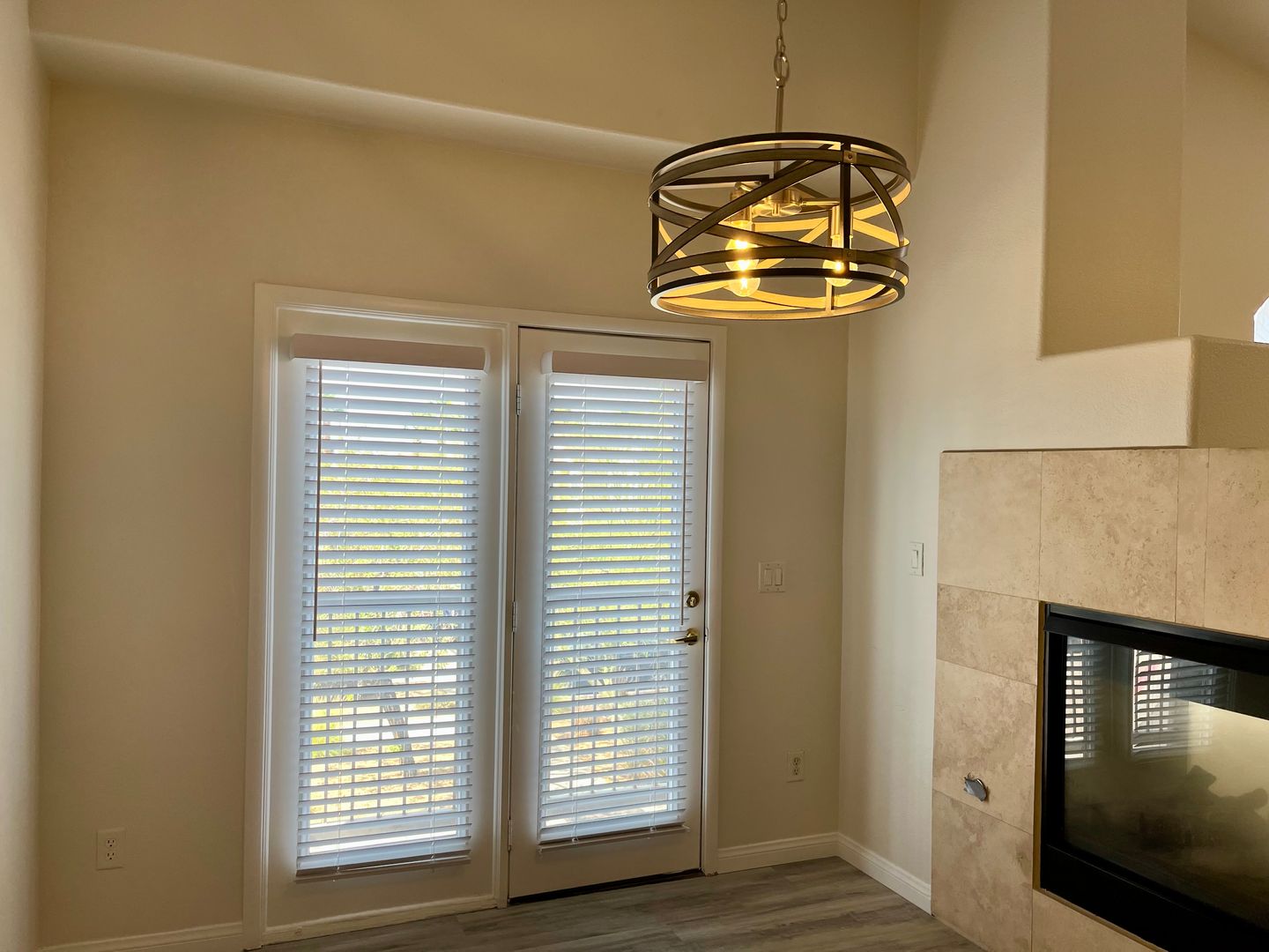 Advertised rent includes all monthly fixed charges. Welcome to this charming 2 Bedroom, 2 bath, 1 car garage Townhome in a gated community in the heart of Henderson! With vaulted ceilings, balcony, ceiling fans & new man-made luxury vinyl plank floors throughout and new AC, this home is move-in ready. The lovely kitchen is comprised of oak cabinetry w/breakfast bar w/ample counter space, laminate counters, pantry, recessed lighting & Stainless Steel appliances. Dining nook with french doors to the balcony and cozy 3 way gas fireplace separating dining & living room w/ceiling fan & light. Primary bedroom, featuring its own ensuite, ceiling fan & light and walk-in closet. Primary bath with walk in shower. Bed 2 is separate from primary with ceiling fan & light. Bath 2 with tub/shower combo. Gated community with pool, park, playground with greenbelt! The home is nestled in a prime location near schools, shopping, freeways, and entertainment! Don't miss out on this incredible opportunity to live in Henderson! $1,700 base rent + $35 trash = $1,735 periodic rent.
