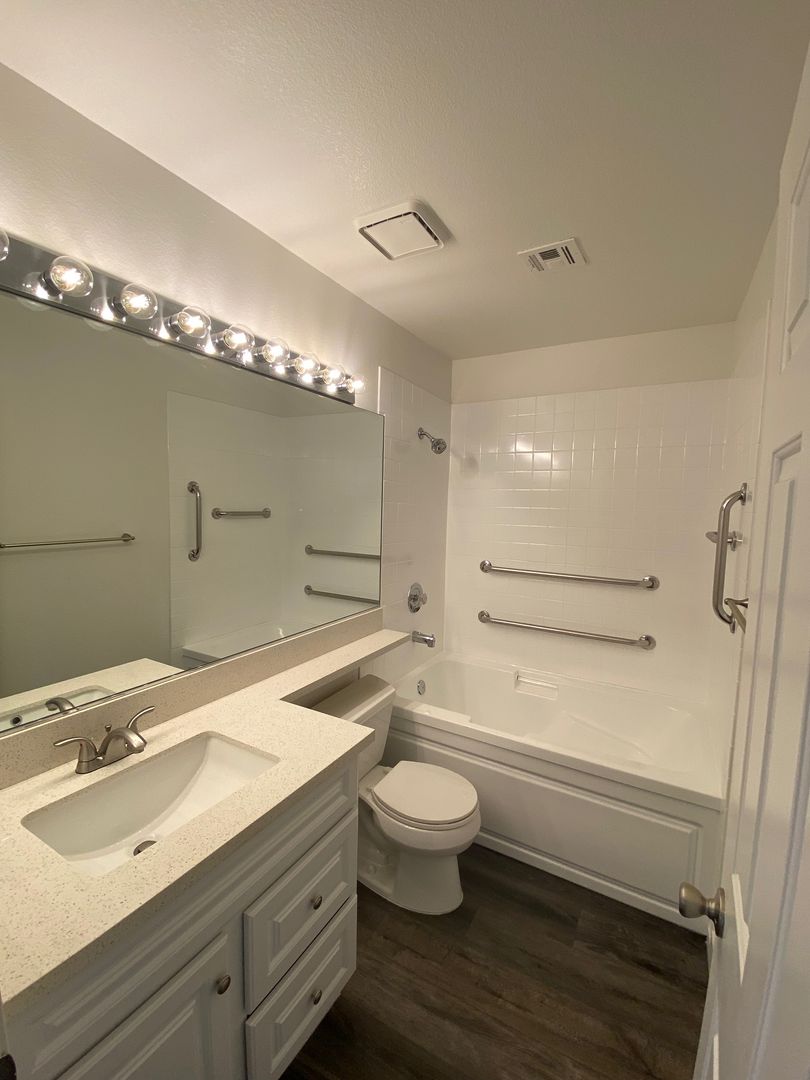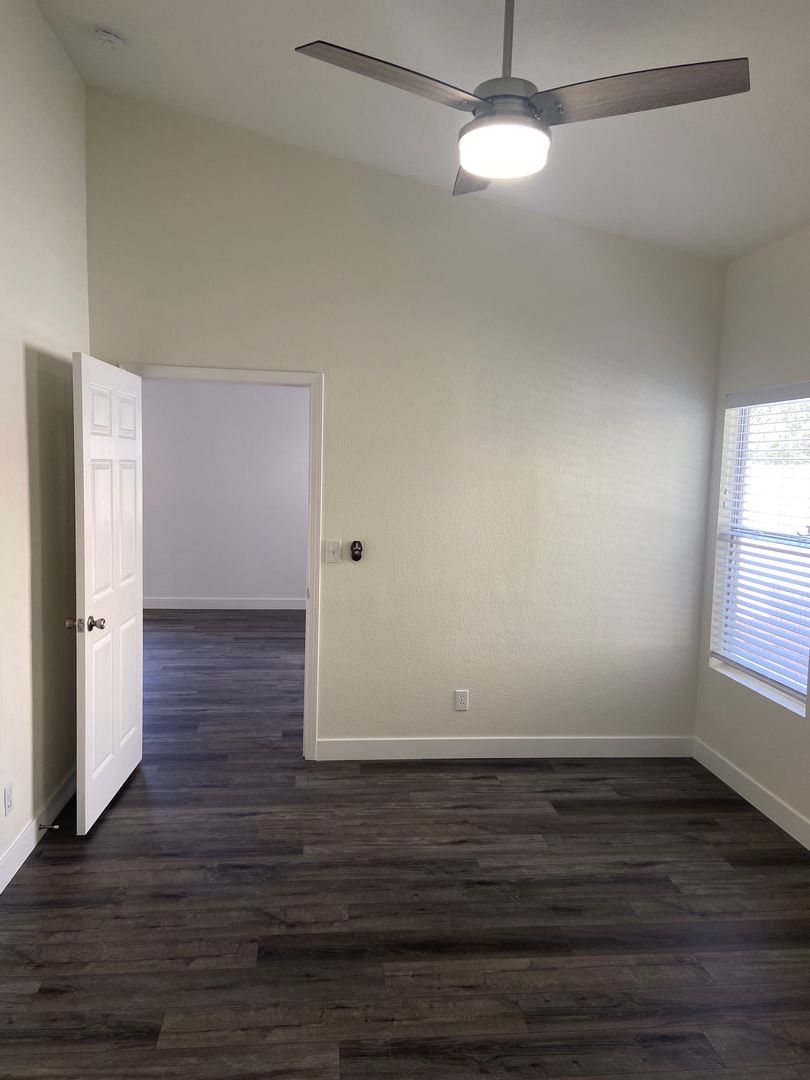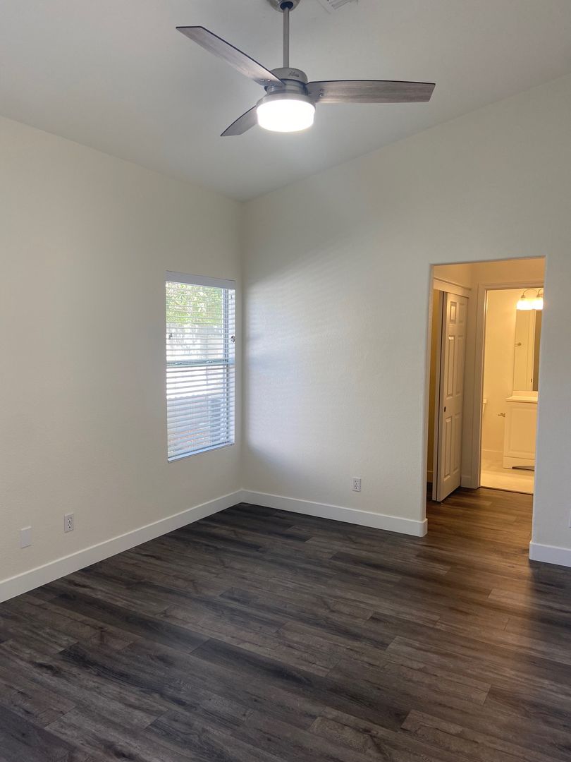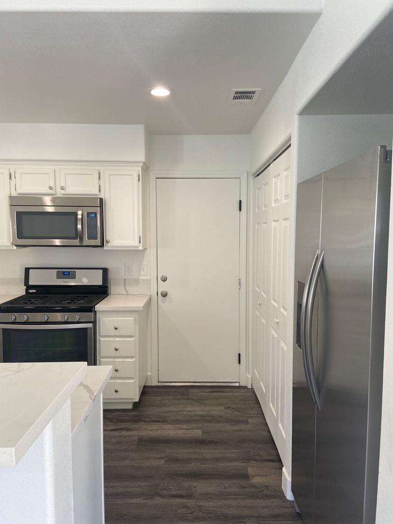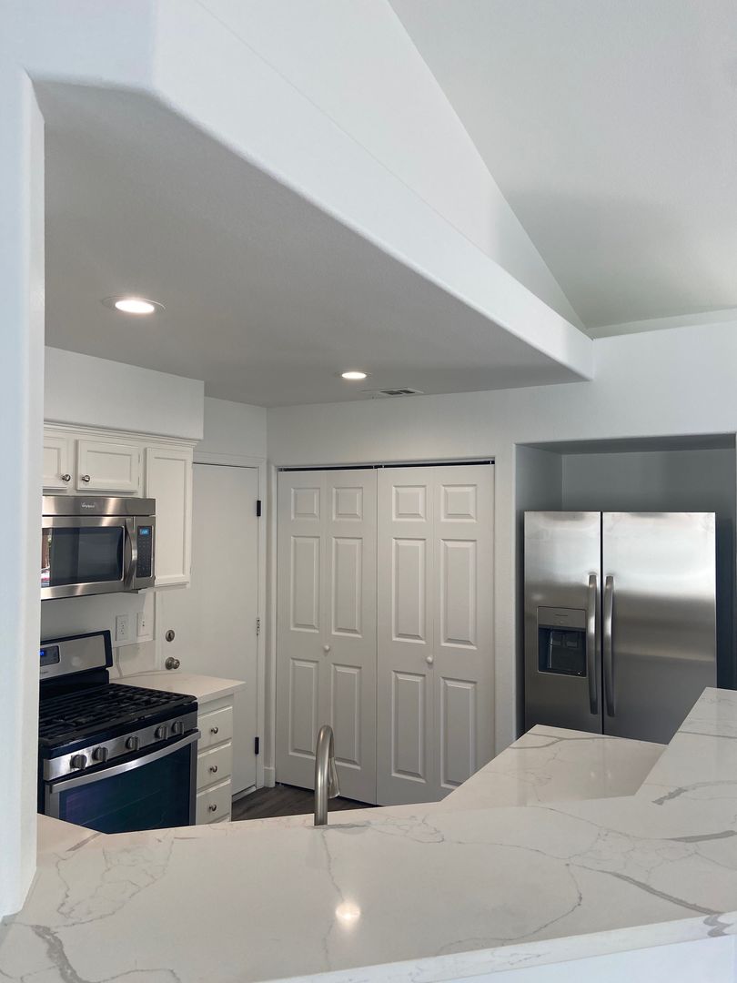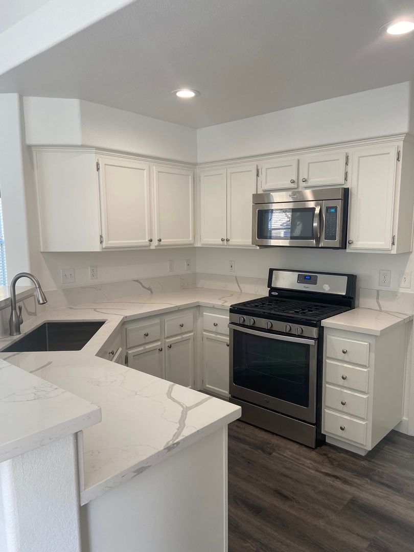 Fantastic single-story home with a 2-car garage, beautifully updated throughout! Enjoy luxury vinyl plank flooring, fresh paint, and an open floor plan filled with natural light. The remodeled kitchen features quartz countertops, stainless steel appliances (including refrigerator), and stylish finishes. Ceiling fans are found throughout the home for year-round comfort. All appliances are included—washer and dryer, too!