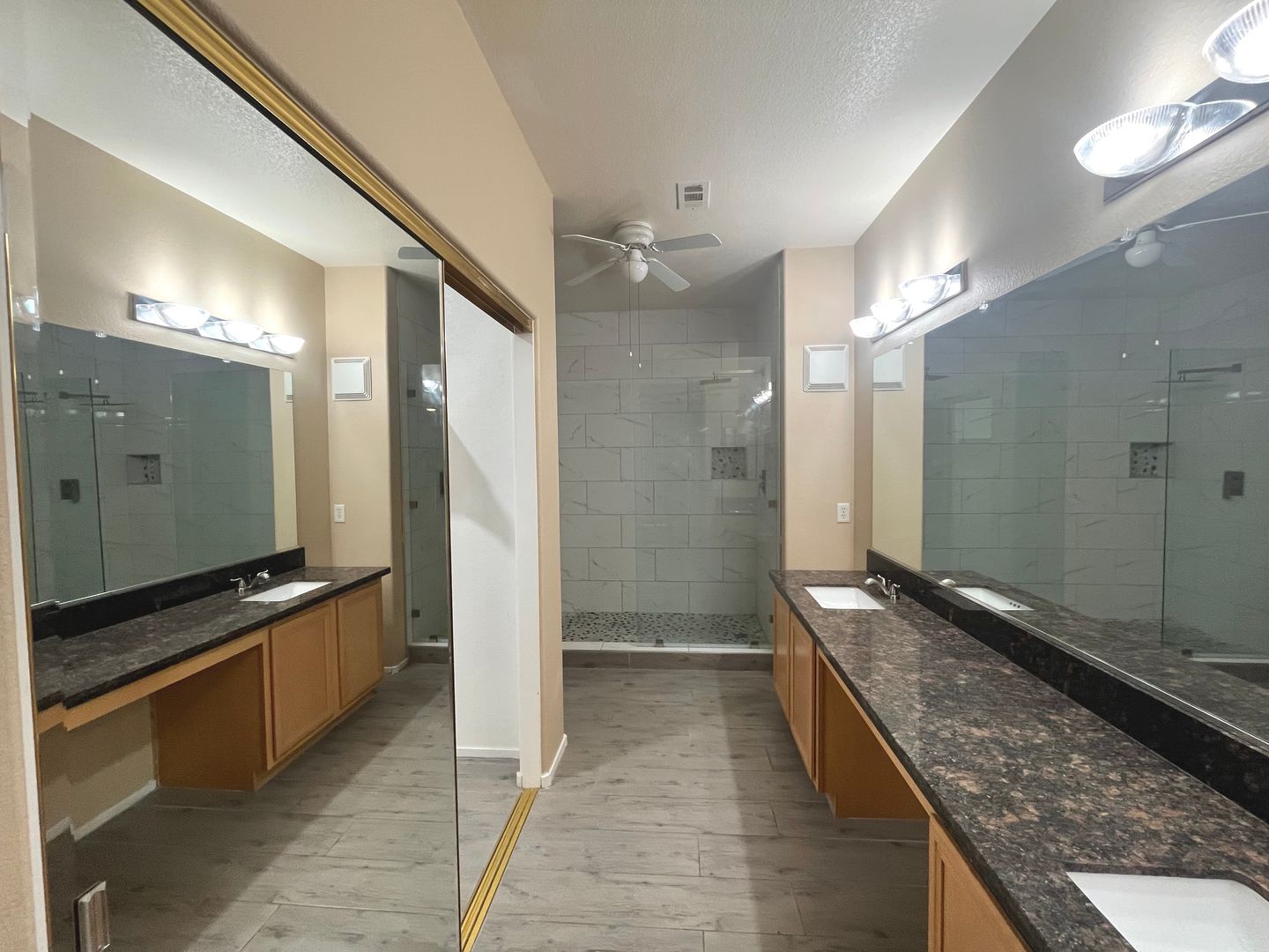 Beautiful Summerlin townhome, 3 bed, 2.5 bath, on 1st floor. Family room w/ceramic tile floors, two tone paint, ceiling fan & light & french doors to patio. Kitchen w/breakfast bar, granite counters, maple cabinets, glass backsplash, SS appliances, ceramic tile floors, two tone paint & pantry. Dining room w/ceramic tile floors, two tone open to kitchen. Primary bedroom w/ceiling fan/light, ceramic tile floors, two tone paint, glass slider to patio. Primary bath w/dual sinks w/make up counter, granite counters, maple cabinets, oversized walk in shower w/tile surround, ceramic tile floors, two tone paint & walk in closet. Bed 2 w/own bath, ceiling fan/light, ceramic tile floors, two tone paint, walk in closet, bath w/granite counters, maple cabinets, tub/shower combo with full tile surround. Bed 3 w/french doors, ceiling fan & light, ceramic tile floors, two tone paint & closet. Bath 3 w/granite counters, maple counters, tub/shower combo. Laundry off kitchen. Two covered patios.