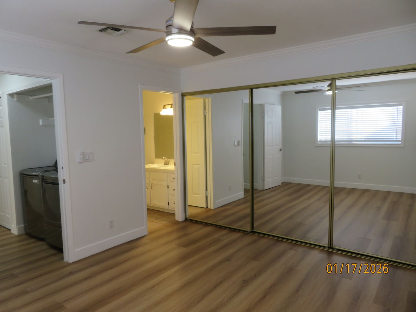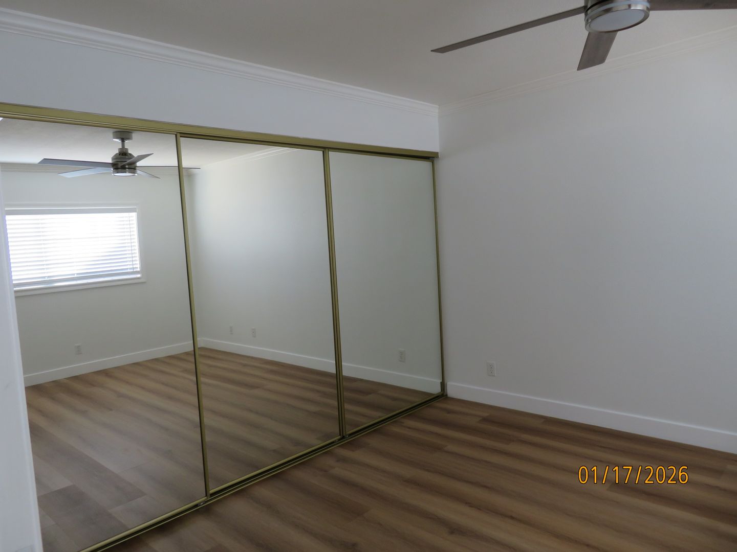 This clean, well-maintained upstairs condo features 2 bedrooms and 2 bathrooms, located in a desirable gated community. The community offers resort-style amenities, including a pool, spa, and tennis courts. The kitchen includes Corian countertops, white appliances, and an in-unit washer and dryer. New vinyl plank flooring with a wood-like finish runs throughout the condo, and ceiling fans are installed in both bedrooms. The spacious living room features a cozy fireplace and French doors that open to a private patio with an attached storage room. The property includes one assigned covered parking space along with additional open parking.
