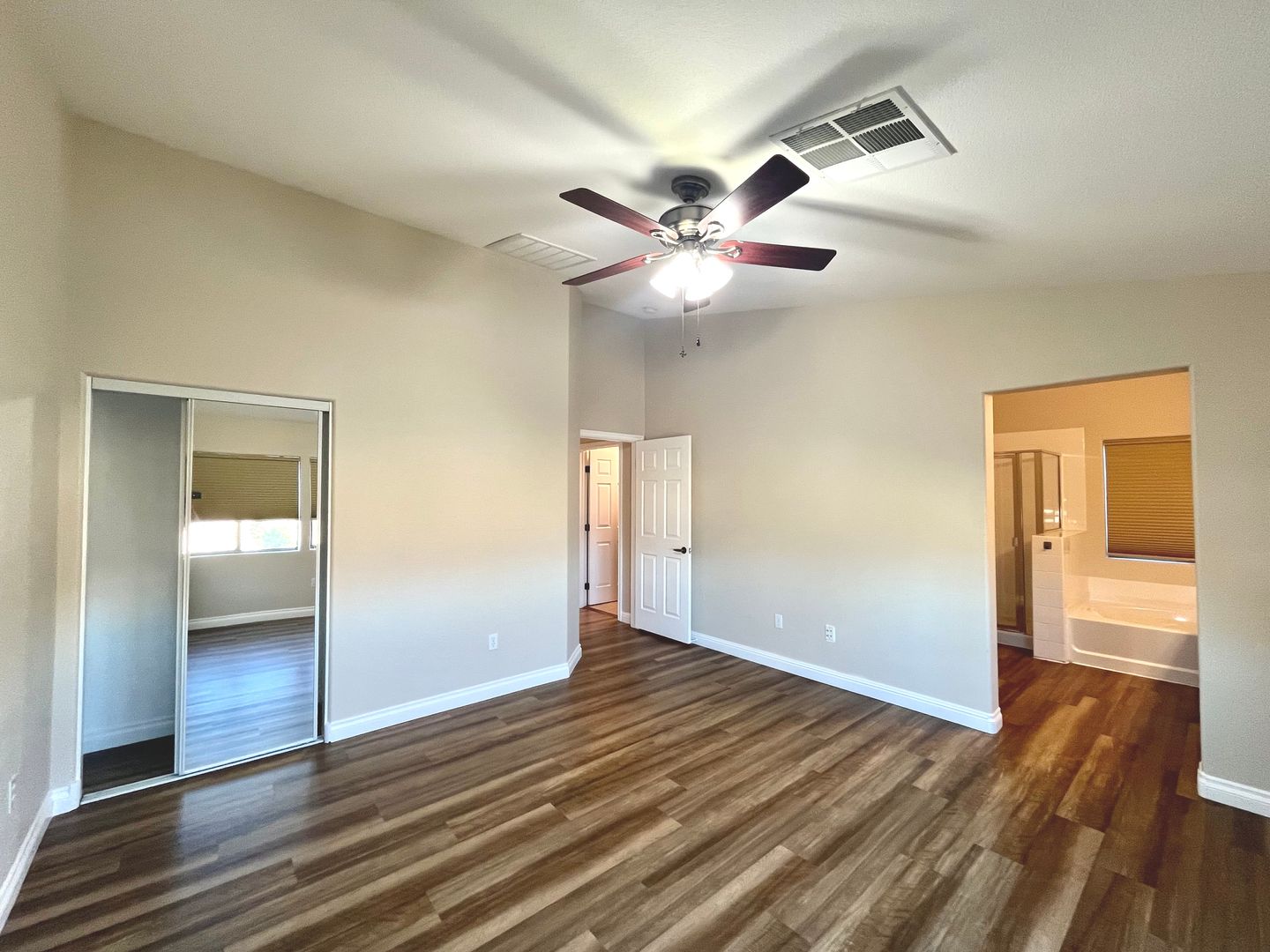 Highly upgraded 2107 sq ft, 4 bedroom, 2 1/2 bath, 2 car garage in Lone Mtn area. Luxury vinly plant floors trhoughout with tile in wet areas. Kitchen has island w/granite counters, farm sink, breakfast bar, raised cherry cabinets, SS appliances, pantry, recessed lights & dining nook. Formal dining area w/built in computer desk. Living room open with ceiling fan & light. Primary bed w/ceiling fan & light, 2 closets (one walk in w/built ins). Primary bath w/dual sinks, sep tub & shower, upgraded automatic toilet w/bidet. Bed 2 is oversized w/ceiling fan & light and separate split system AC. Bed 3 & 4 w/ceiling fan & light. Laundry room has new washer/dryer and raised cherry cabinets. House features a whole house water filtration system, upgraded pull down blinds, ring doorbell, atomi smart app for garage door and alarm system. Backyard with concrete and synthetic grass. This house is a must see and won't disappoint.