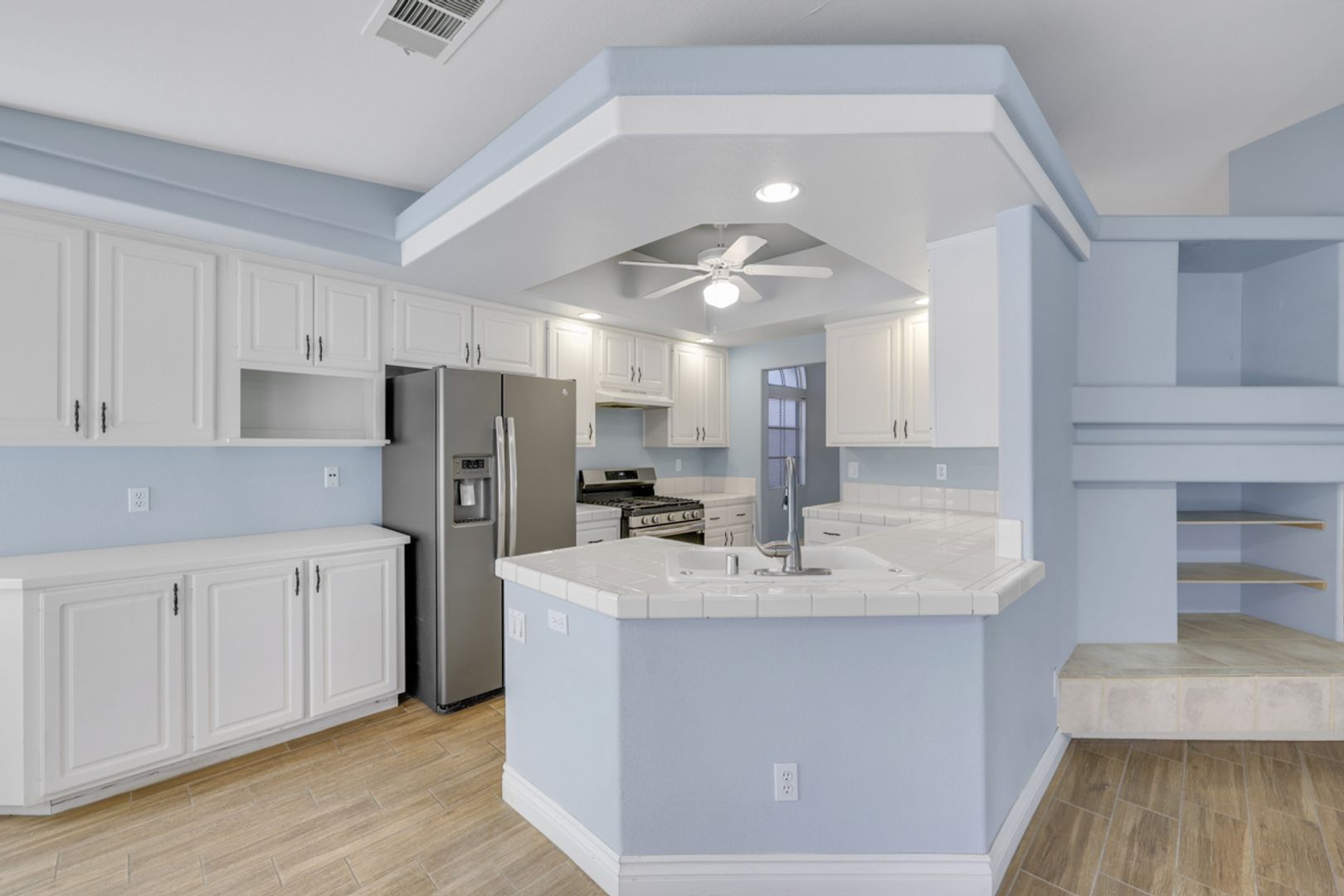 Great condition, open floor plan, vaulted ceilings, beautiful modern tile floors throughout.