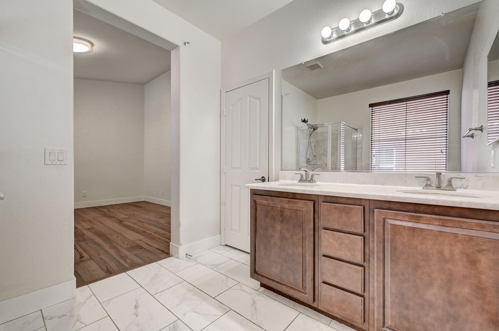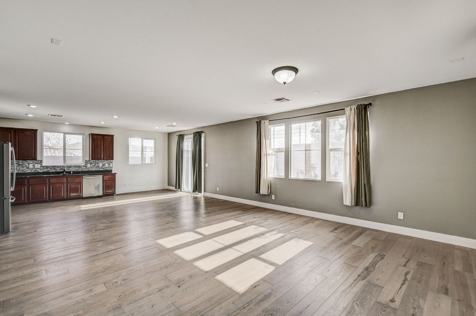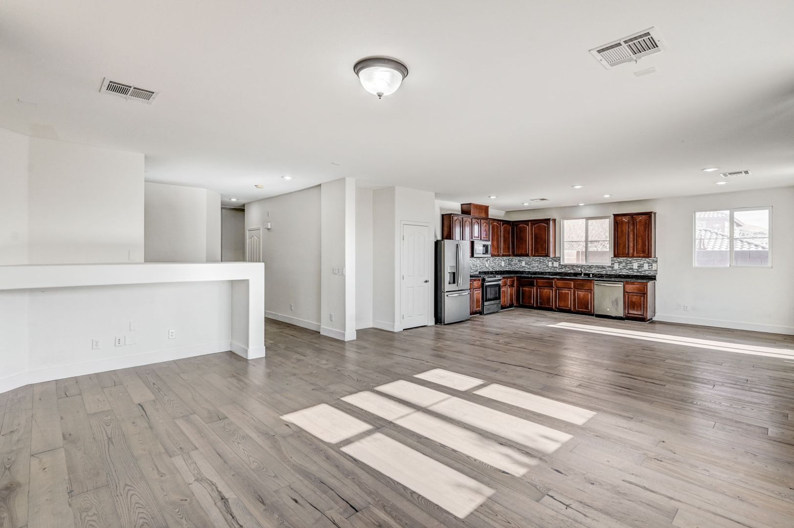 Welcome home to this spacious single-story residence located in the sought-after Chaco Canyon community of Mountain’s Edge. Enjoy convenient access to nearby shopping, dining, and everyday essentials while living in a beautifully planned neighborhood. This 4-bedroom home features a bright, open layout filled with natural sunlight and luxury vinyl plank flooring throughout. The kitchen is equipped with stainless steel appliances and flows seamlessly into the main living areas—perfect for both daily living and entertaining. The primary suite offers a generous walk-in closet and a spa-like bathroom with dual sinks and a separate soaking tub and shower. Step outside to a low-maintenance backyard with paver patio, ideal for relaxing or hosting guests. Comfort, style, and location come together in this Mountain’s Edge gem.