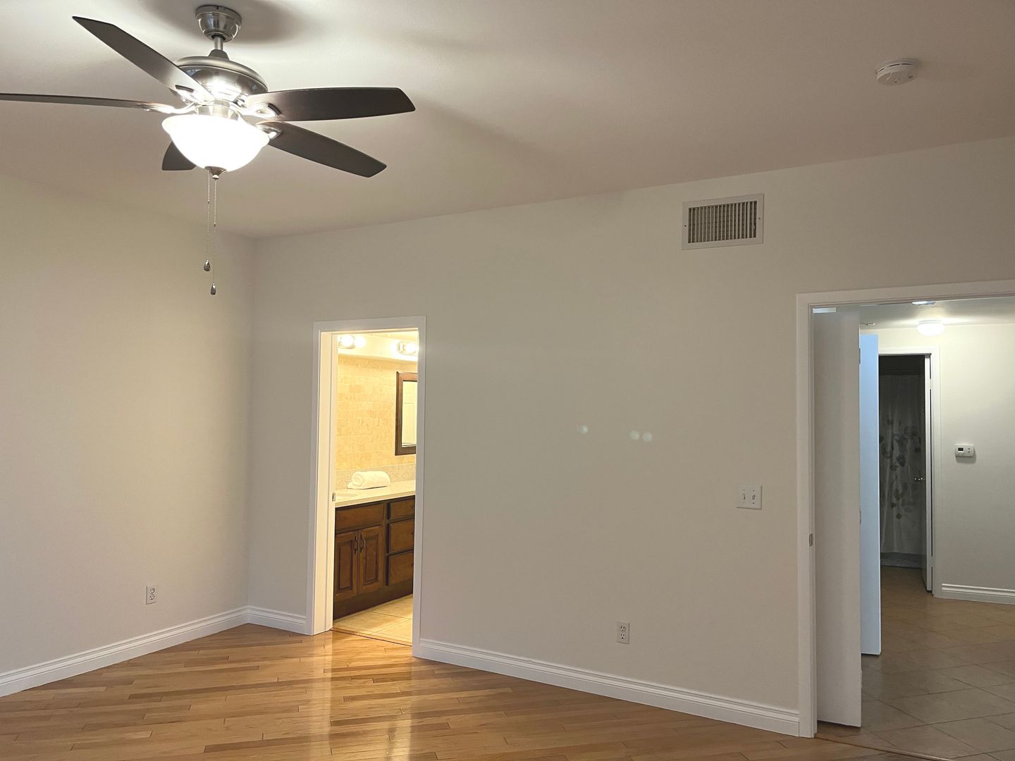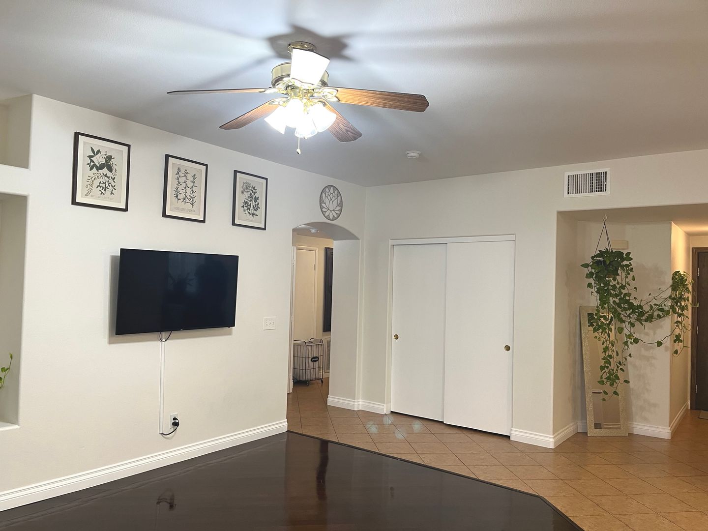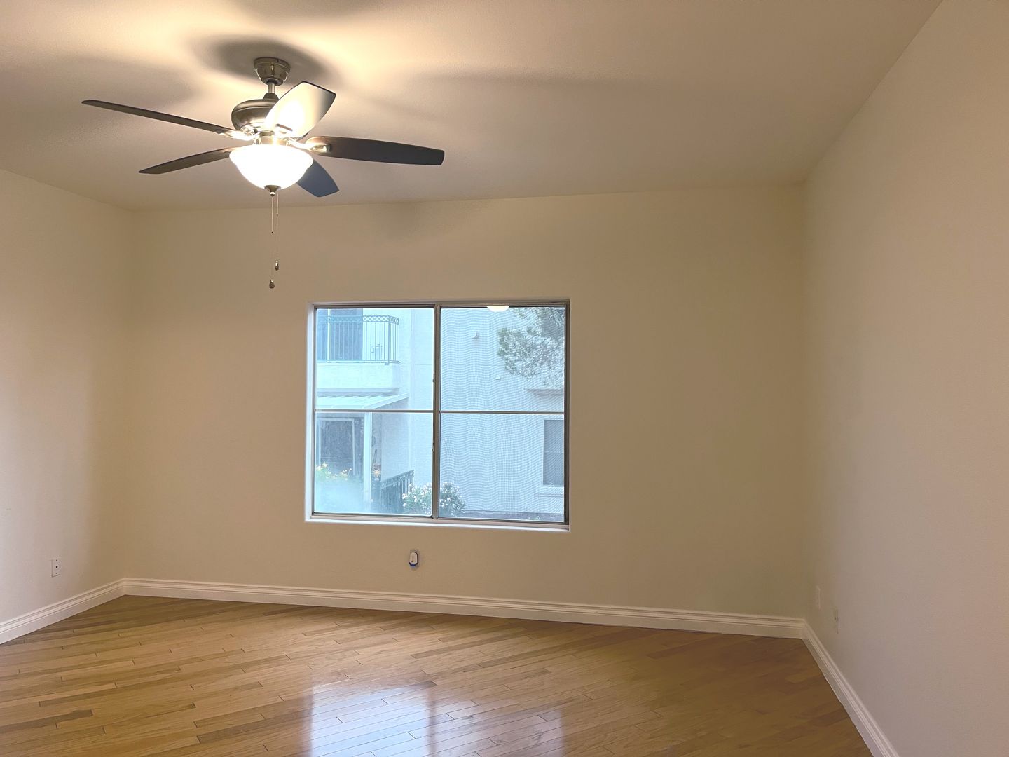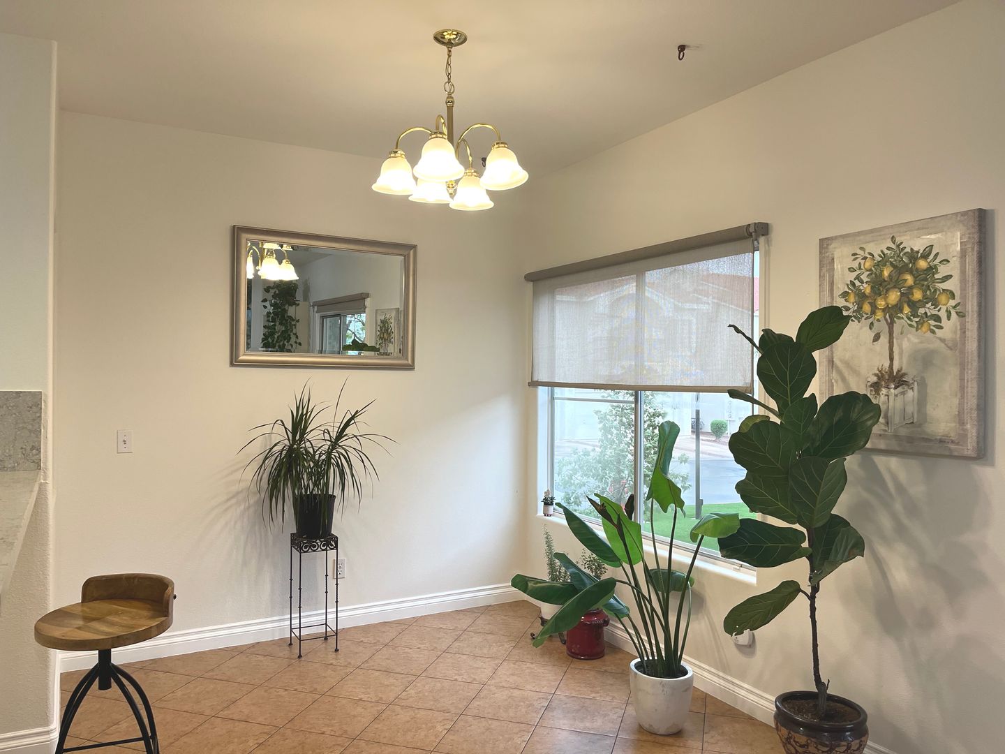 Advertised rent includes all monthly fixed charges. Remodeled, first floor 1428 sq ft, 2 bed+ den, 2 bath, 1 car detached garage condo in gated community. AC & water heater were replaced in 2020 & house is newly painted. Kitchen w/breakfast bar w/granite counters, full granite backsplash, raised custom cabinets w/soft close doors & drawers, ceramic tile floors, new SS refrigerator, white stove µowave, walk in pantry & dining nook. Living room w/ceiling fan & light, wood laminate floors & brick niche w/slider to outdoor covered patio. Primary bed w/ceiling fan & light, wood laminate floors & walk in closet. Primary bath w/dual sinks, granite countertops, travertine tile backsplash, linen closet & tub/shower combo w/travertine tile surround. Bed 2 w/ceiling fan & light, wood laminate floors & closet. Bath 2 w/tile floors, granite counters & tub/shower combo w/travertine tile surround. Den w/ceiling fan & light & wood laminate floors. Covered patio w/concrete slab and wrought iron railing. Detached 1 car garage w/walkway to front door.