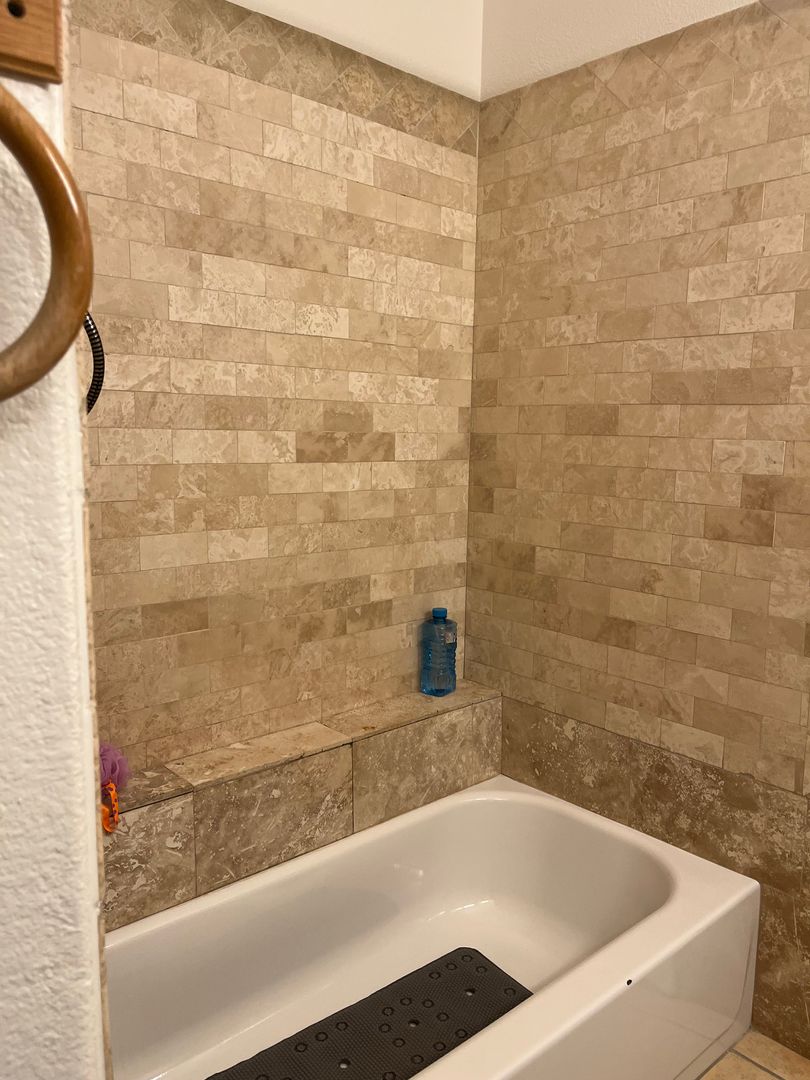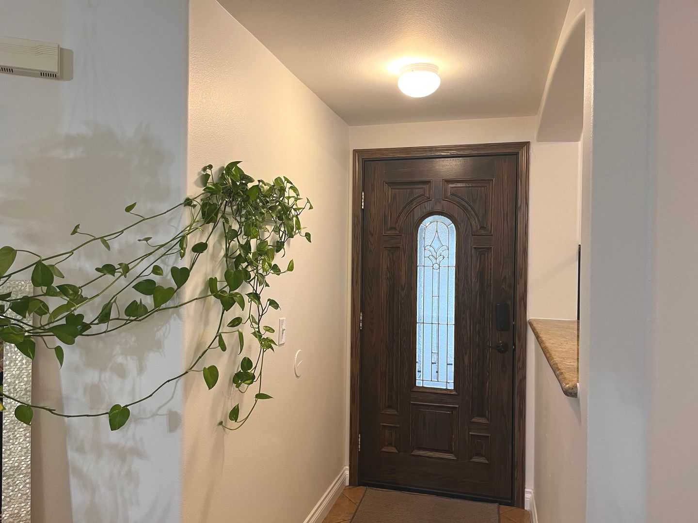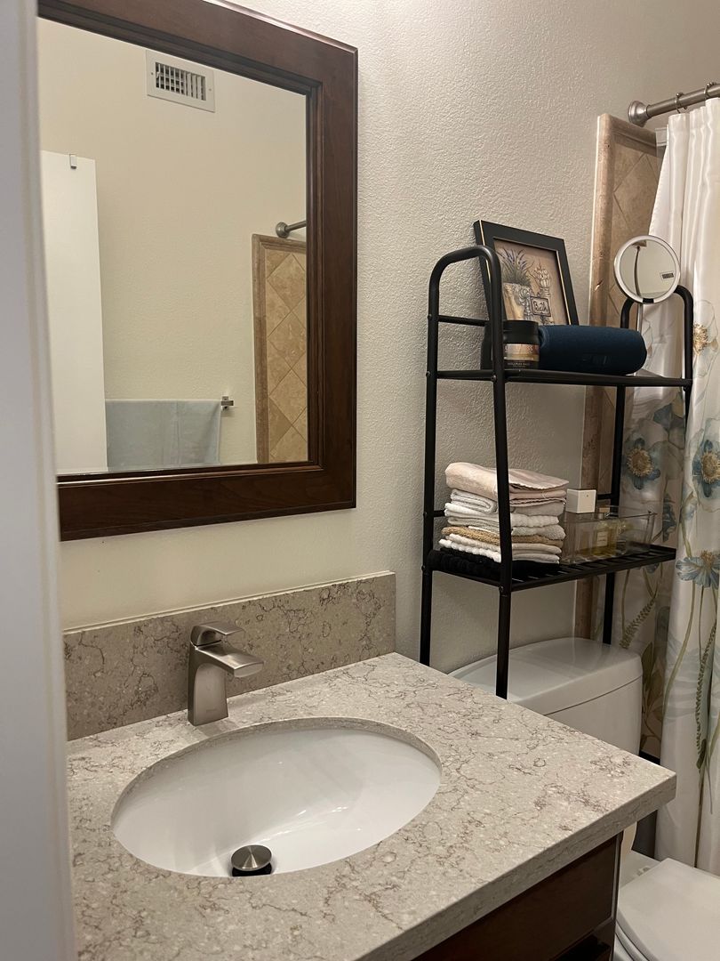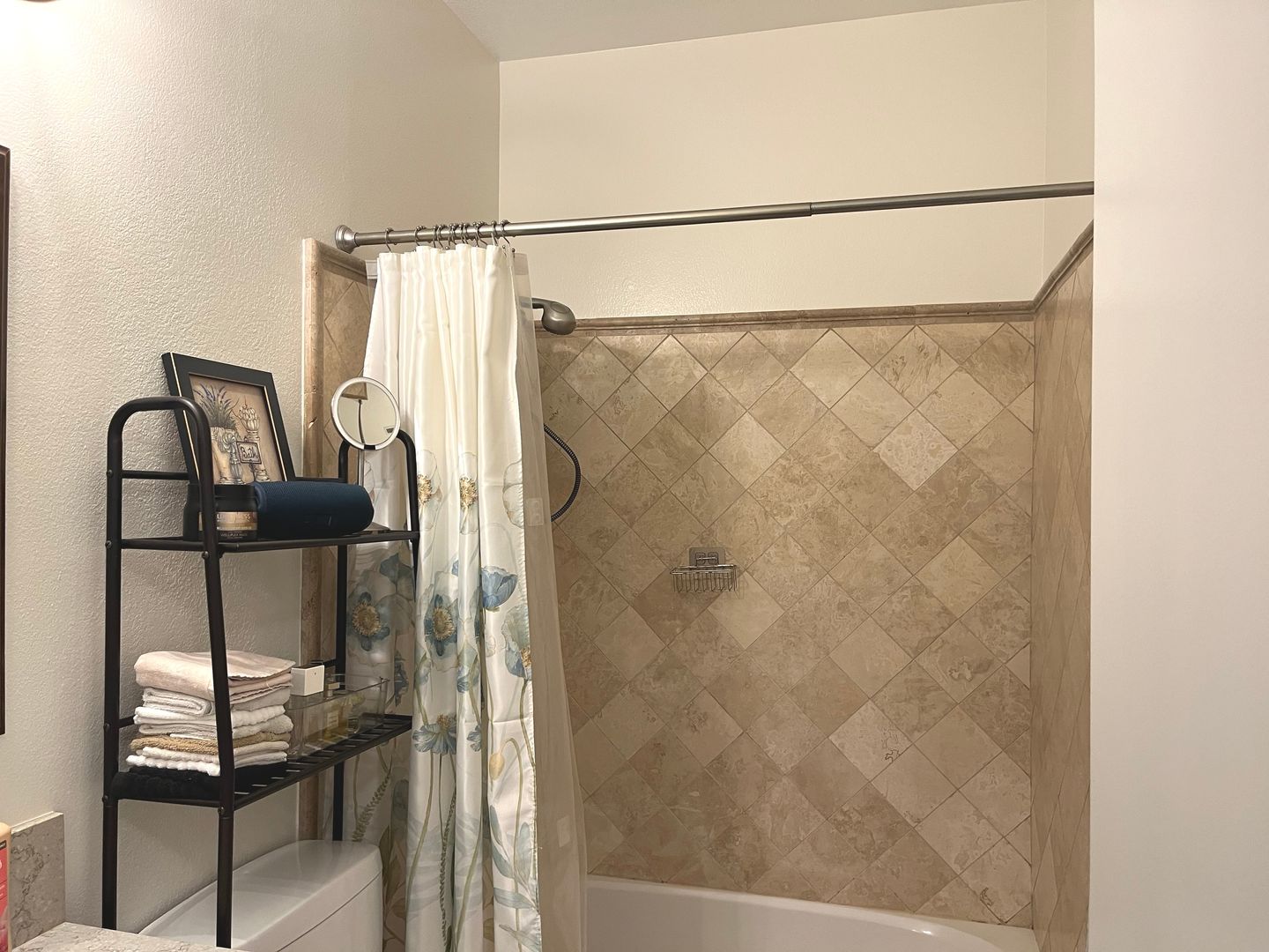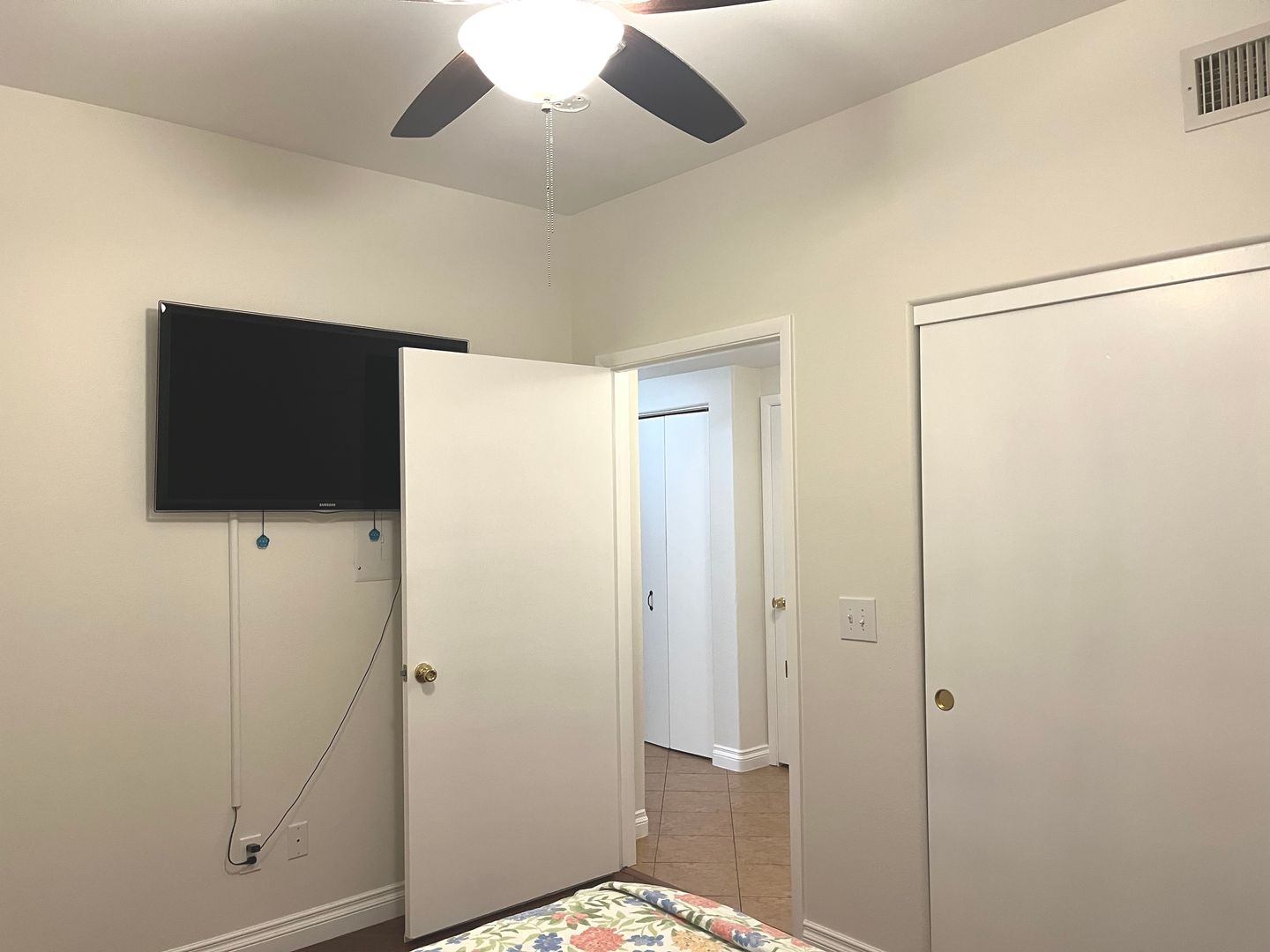Advertised rent includes all monthly fixed charges. Remodeled, first floor 1428 sq ft, 2 bed+ den, 2 bath, 1 car detached garage condo in gated community. AC & water heater were replaced in 2020 & house is newly painted. Kitchen w/breakfast bar w/granite counters, full granite backsplash, raised custom cabinets w/soft close doors & drawers, ceramic tile floors, new SS refrigerator, white stove µowave, walk in pantry & dining nook. Living room w/ceiling fan & light, wood laminate floors & brick niche w/slider to outdoor covered patio. Primary bed w/ceiling fan & light, wood laminate floors & walk in closet. Primary bath w/dual sinks, granite countertops, travertine tile backsplash, linen closet & tub/shower combo w/travertine tile surround. Bed 2 w/ceiling fan & light, wood laminate floors & closet. Bath 2 w/tile floors, granite counters & tub/shower combo w/travertine tile surround. Den w/ceiling fan & light & wood laminate floors. Covered patio w/concrete slab and wrought iron railing. Detached 1 car garage w/walkway to front door.