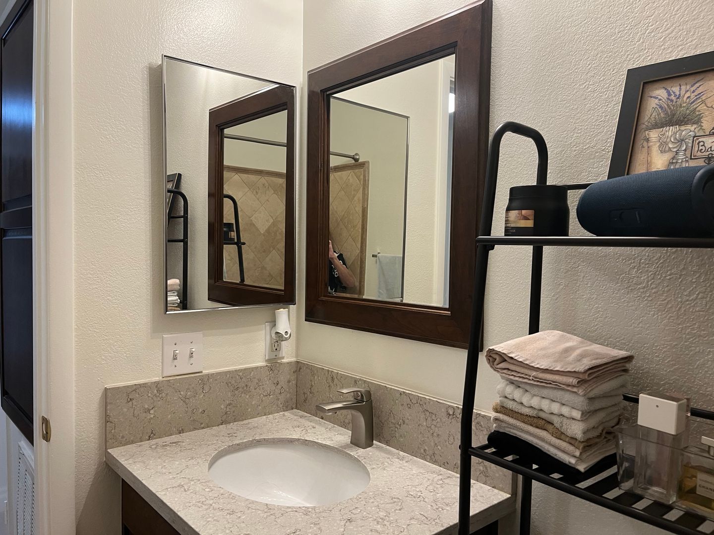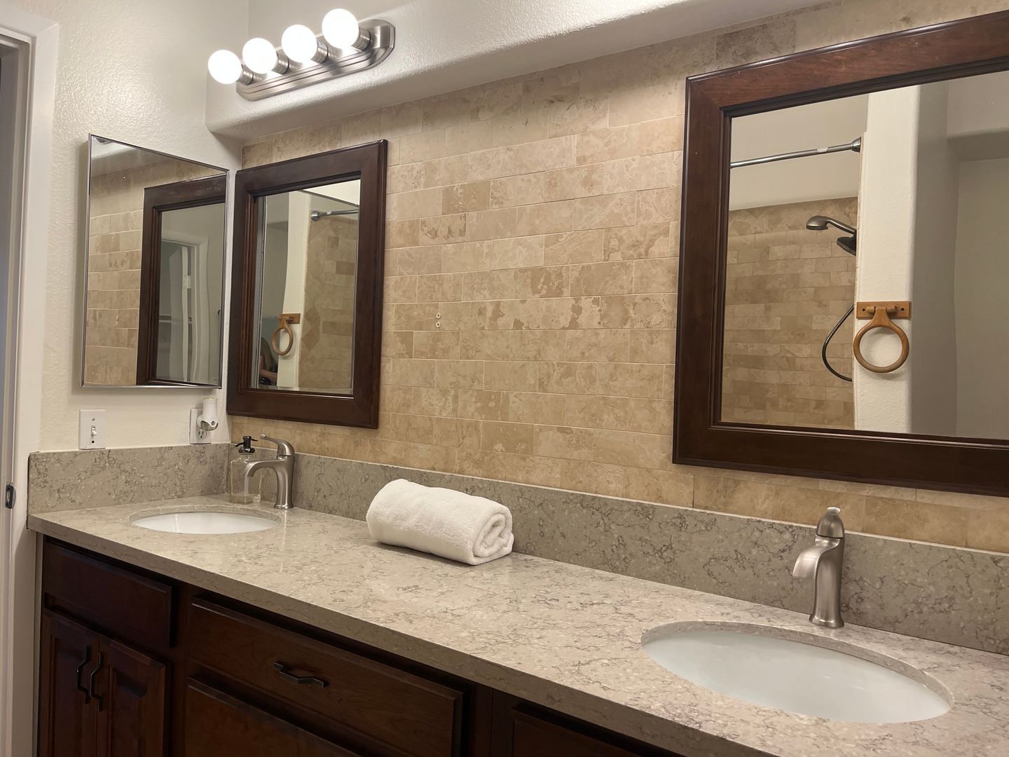 Remodeled, first floor 1428 sq ft, 2 bed+ den, 2 bath, 1 car detached garage condo in gated community