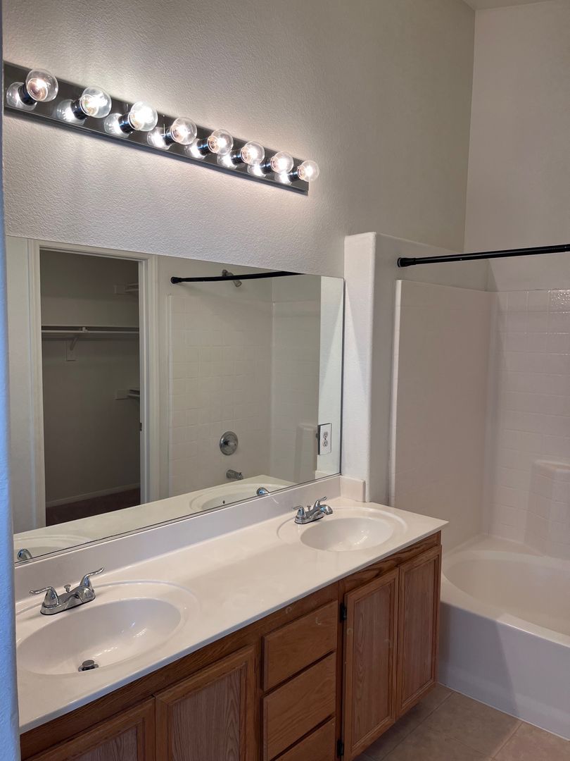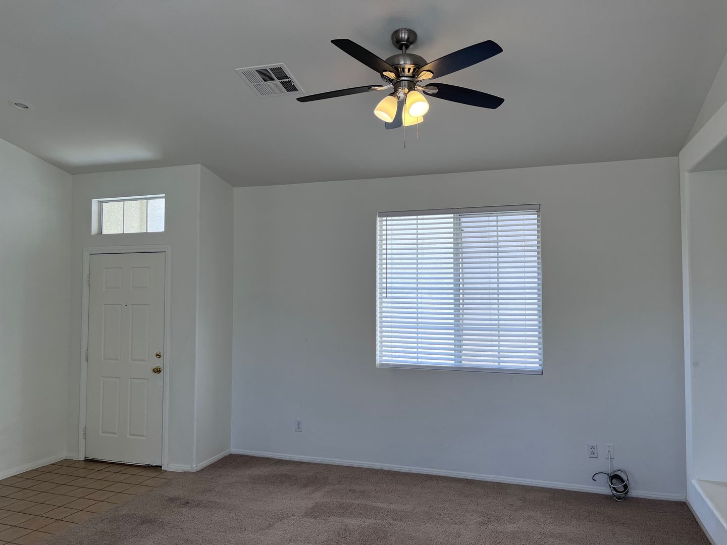 Well-maintained 2-bedroom, 2-bath home with a 2-car garage, located in a desirable gated neighborhood. Recent updates include New Kitchen floors and New window blinds . Open floor plan with vaulted ceilings and a separate dining area. Ceiling fans in the living room and both bedrooms provide added comfort. The primary suite features vaulted ceilings, French doors, a walk-in closet, and an en suite bath with dual sinks. The second bedroom also includes a walk-in closet. Spacious backyard with patio—perfect for outdoor enjoyment. All appliances are included, along with a full-size washer and dryer. Great location —don’t miss this great opportunity! ** AVAILABLE NOVEMBER 26th move in.