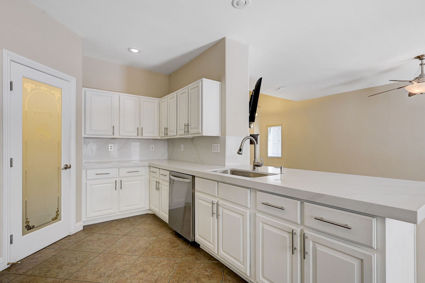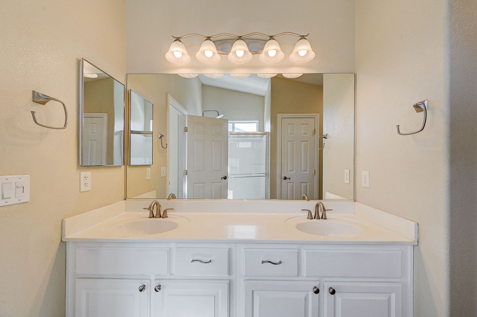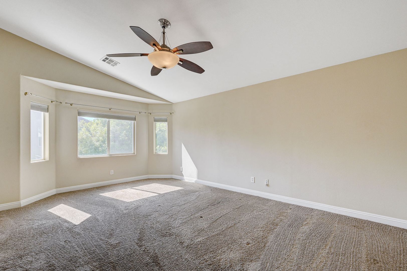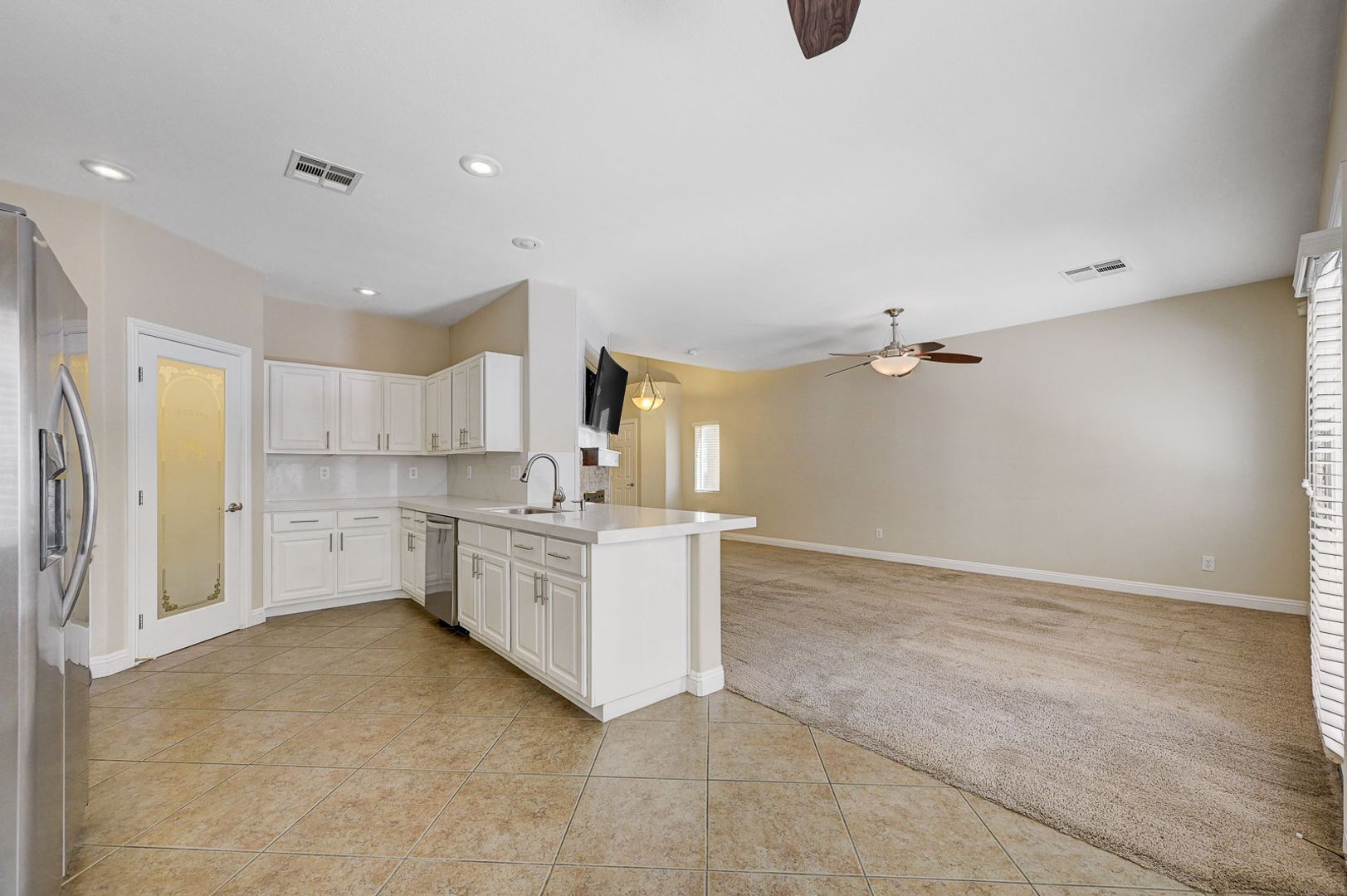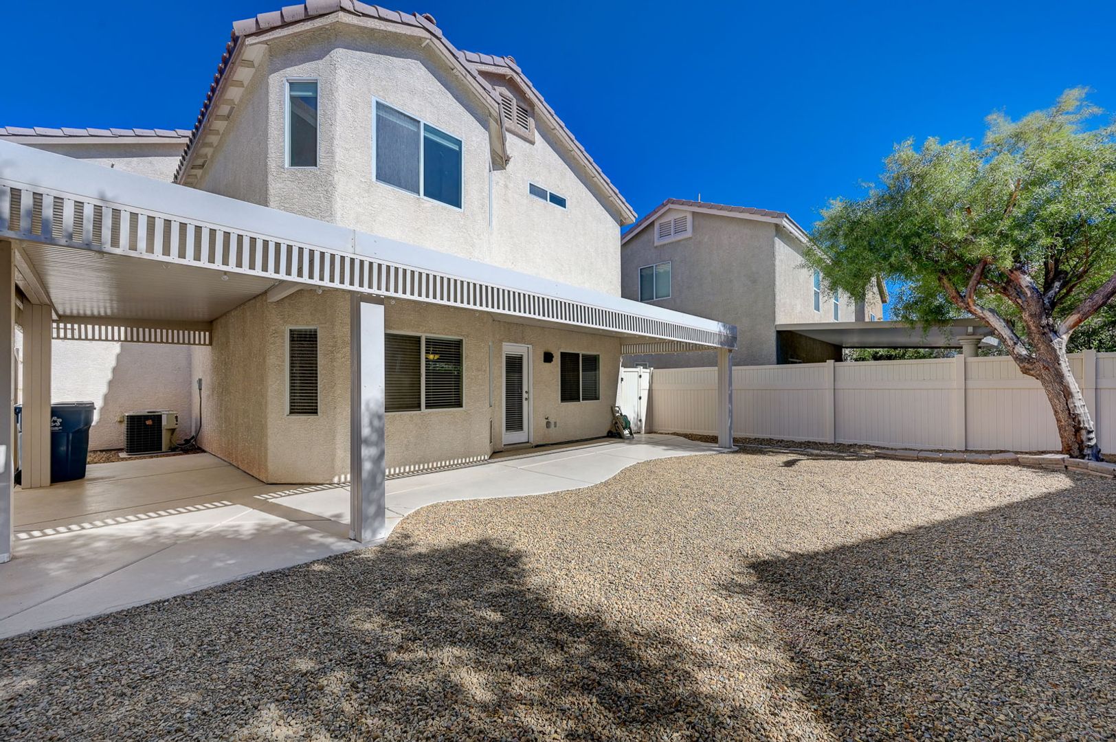 Just outside of Southern Highlands is this beautiful 3-bedroom home located in the desirable Southwest community of Twilight at Cactus Hill! This property features an open and bright floor plan with high vaulted ceilings and tasteful finishes throughout. The kitchen offers a breakfast bar, walk-in pantry with a custom glass door, sleek counters, and white cabinetry. The spacious primary suite includes vaulted ceilings, a large walk-in closet with custom built-ins, and a private bath with dual sinks and a walk-in shower. The living room features a tile-accented gas fireplace, creating a warm and inviting atmosphere. Enjoy outdoor living with an expansive covered patio and large backyard, perfect for relaxing or entertaining! Conveniently located near shopping, dining, and freeway access. This one is a must see! (Base Rent is $2100, $60 for landscaping, $15 for trash and $25 for sewer)