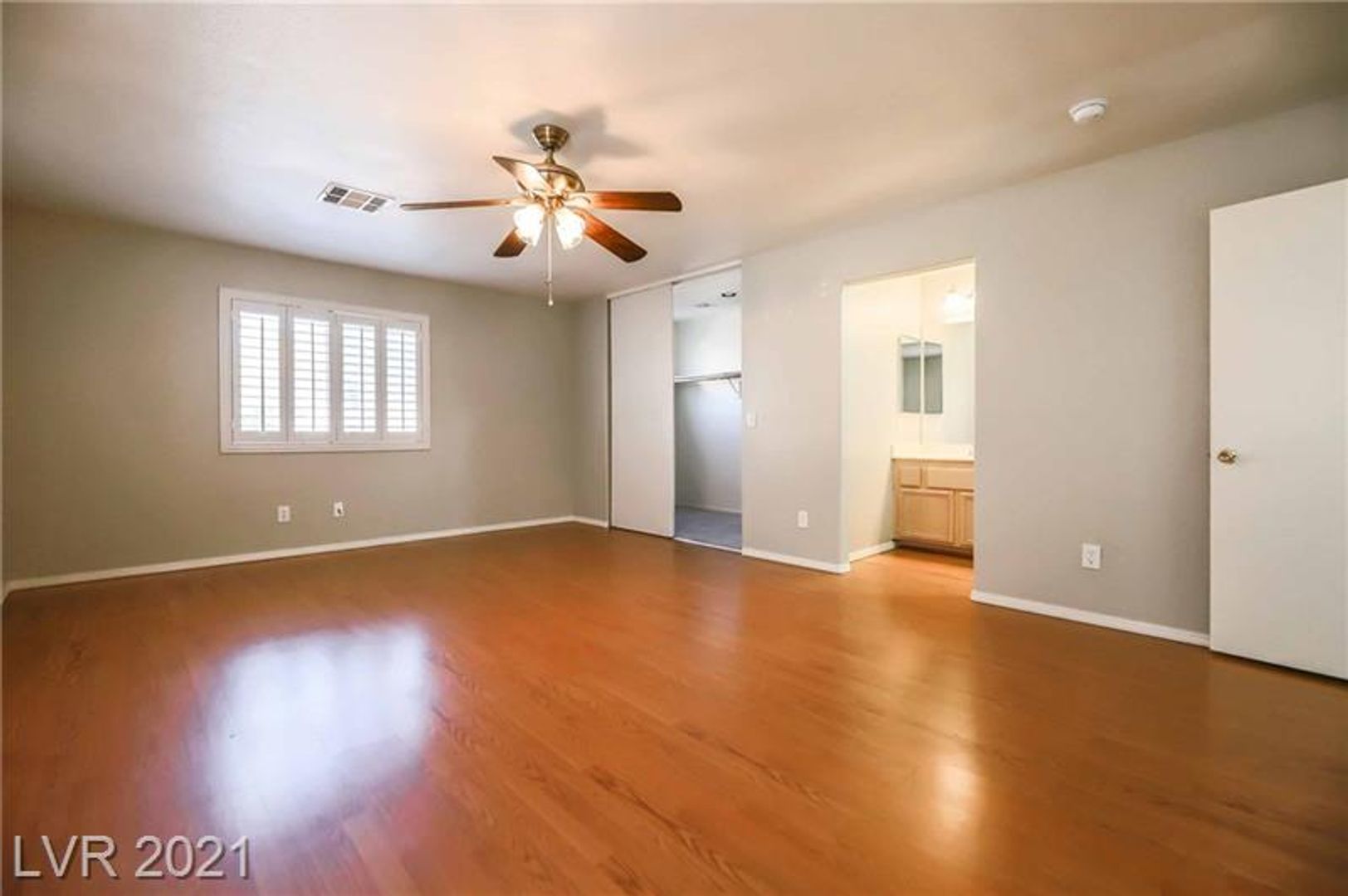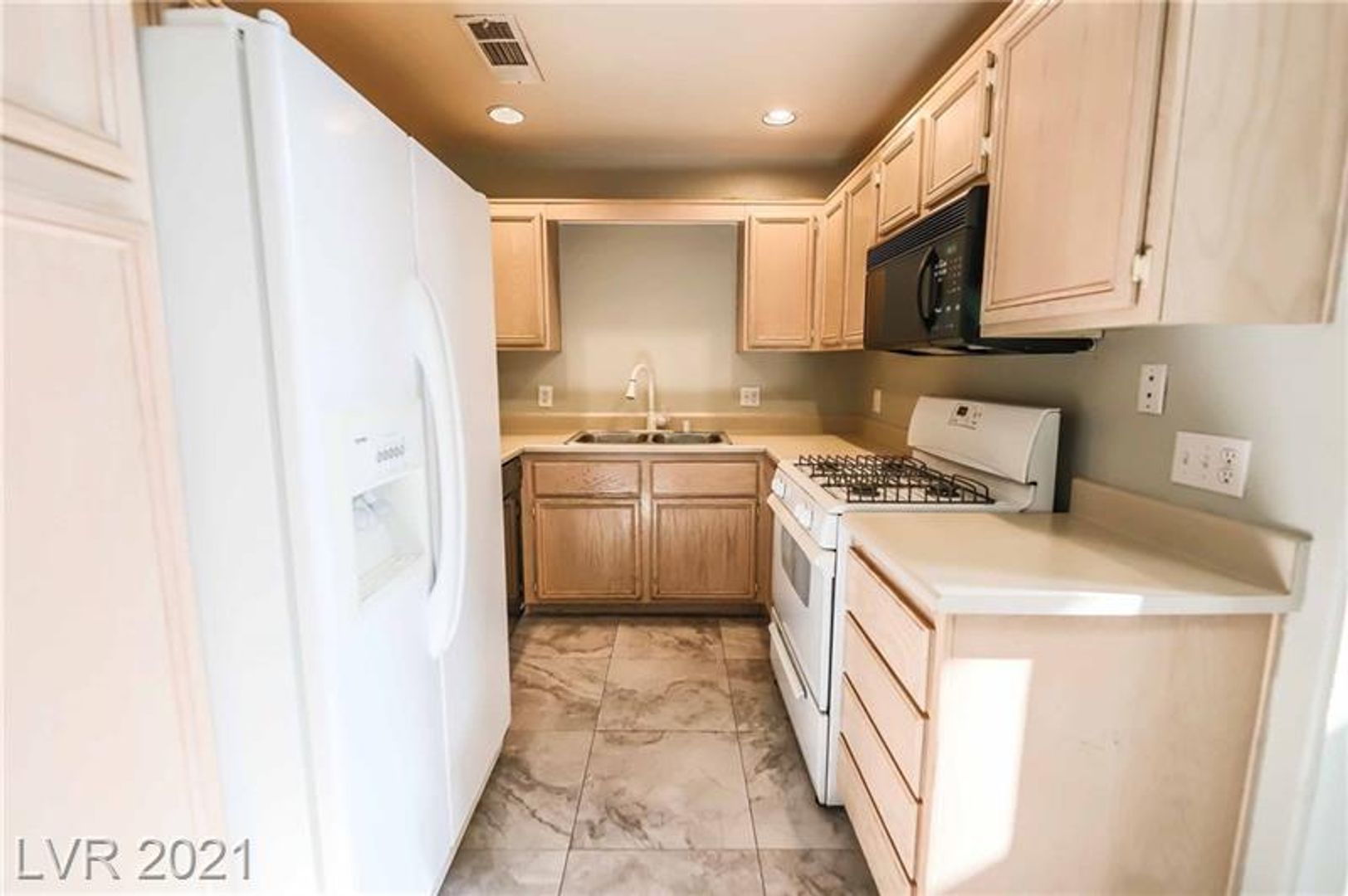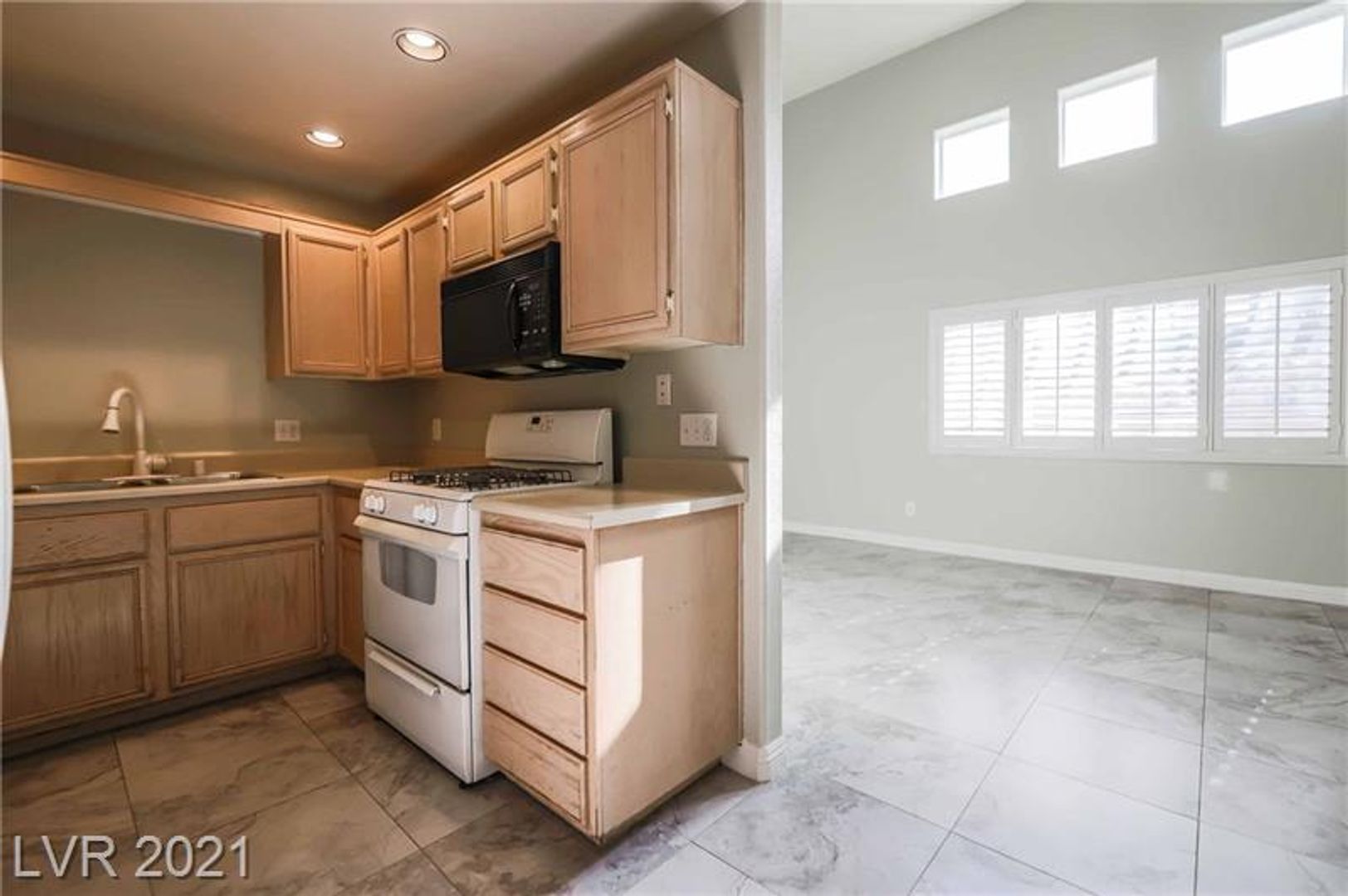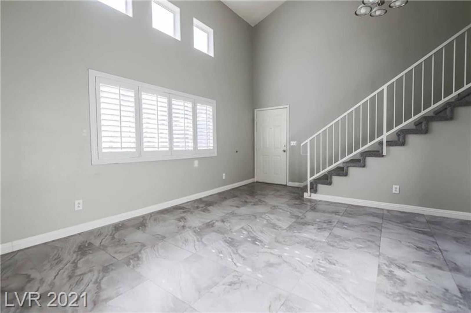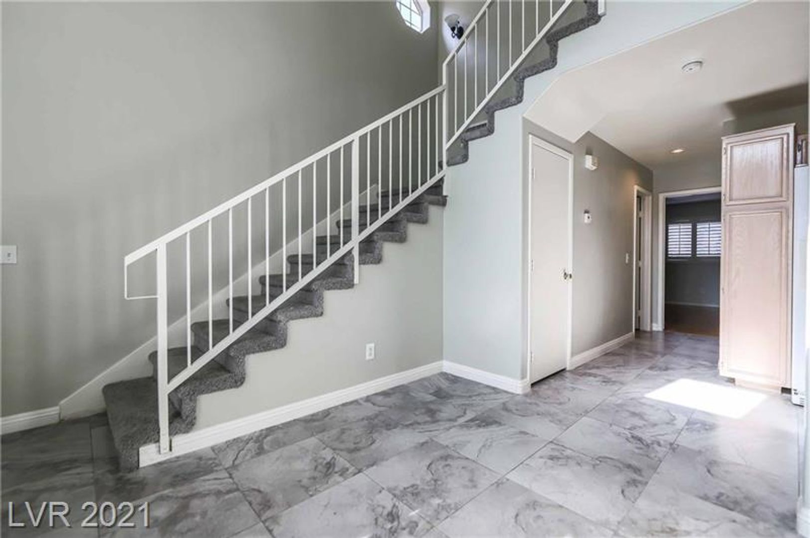Welcome to this charming and move-in-ready 2-story townhome located in a desirable gated community! This bright and inviting 2-bedroom, 2 full bath home features a versatile layout with one bedroom and full bath conveniently located downstairs perfect for guests or a home office. Enjoy a private front courtyard entry lined with palm trees, leading into a spacious interior with soaring vaulted ceilings, tile flooring, plantation shutters, and an open-concept living space filled with natural light. The upstairs primary suite offers a walk-in closet for ample storage. All appliances are included for your convenience. Ideally situated just minutes from the Strip, with access to a community pool and spa this home blends comfort, style, and location!