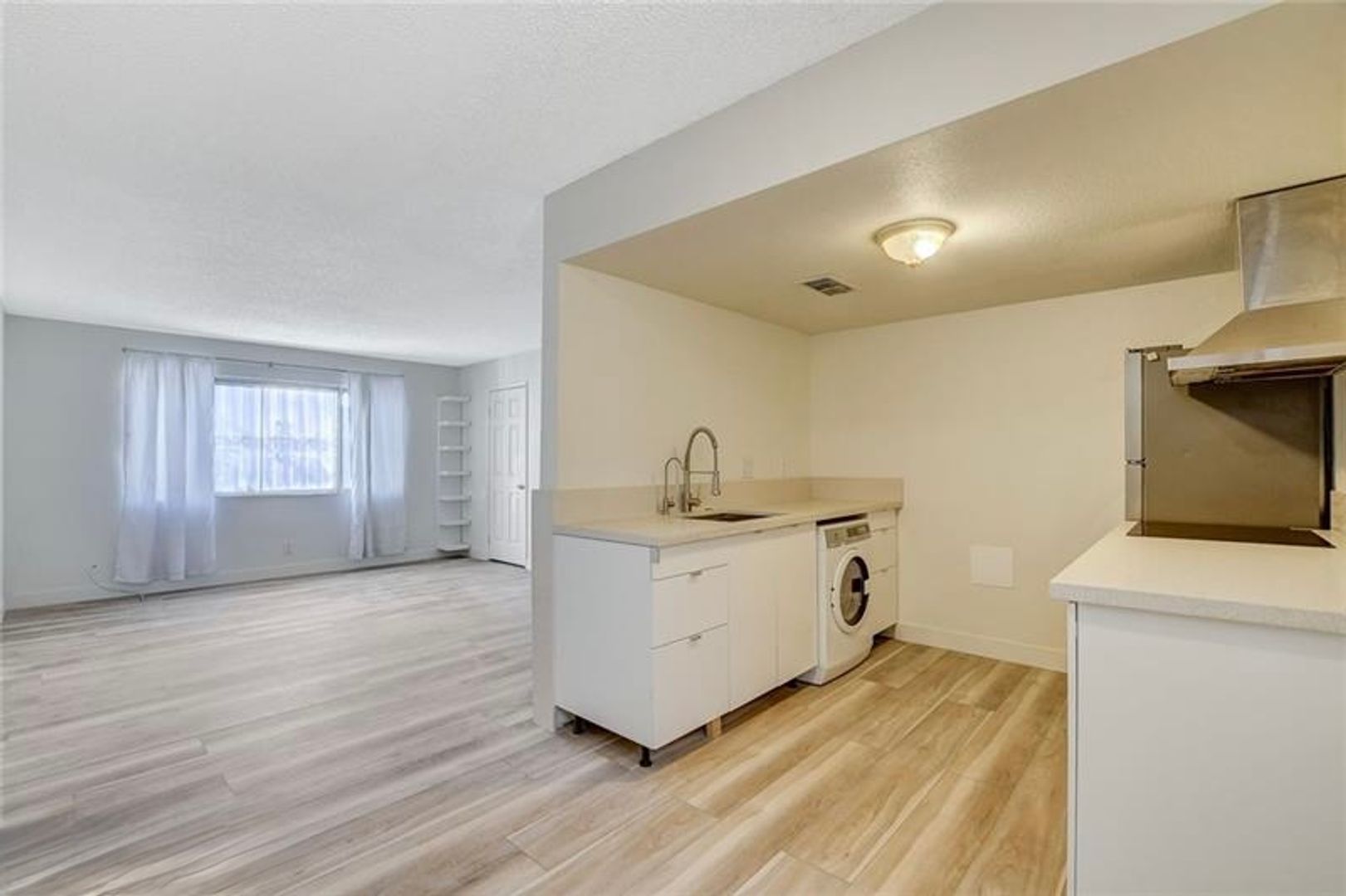 Completely Updated and Move-In Ready, 2 bedroom, 1 bath first floor unit! Open Spacious Floor Plan! New Grey Luxury Vinyl Plank Flooring Throughout; Living Room with built in shelf and two storage closets. Kitchen has Quartz Countertops, Custom White Cabinets with Stainless Steel Range Hood, Sink, Refrigerator & White Microwave, luxury vinly plank floors and Dining Area; Dishwasher removed to add Washing machine. Remodeled Bath Offers $10k in Upgrades Including Marble Subway Tile and floor to ceiling Mosaic tile; Oversized Bedrooms with new lighting & closets; Property has wrought iron security door to entrance to Breezeway with storage closet and additional Wrought Iron Security Door to property as well as security bars on all windows. Community features two coin operated Laundry Facilities and Sparkling Community Pool. Easy Access to UNLV, Dining, Shopping, Sports and Entertainment. HOA Covers Exterior of Building, Including the Roof, Water, Trash & Sewer. Tenant just pays Power.
